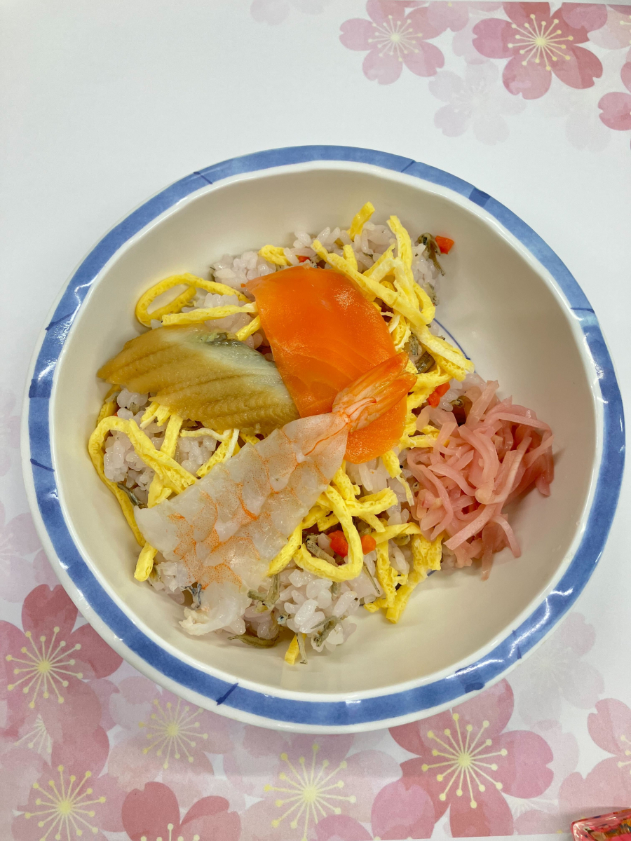 ぽかぽかとした陽気に包まれ、春の訪れを感じる季節となりましたね。先日、春らしさあふれるちらし寿司をご用意しました。