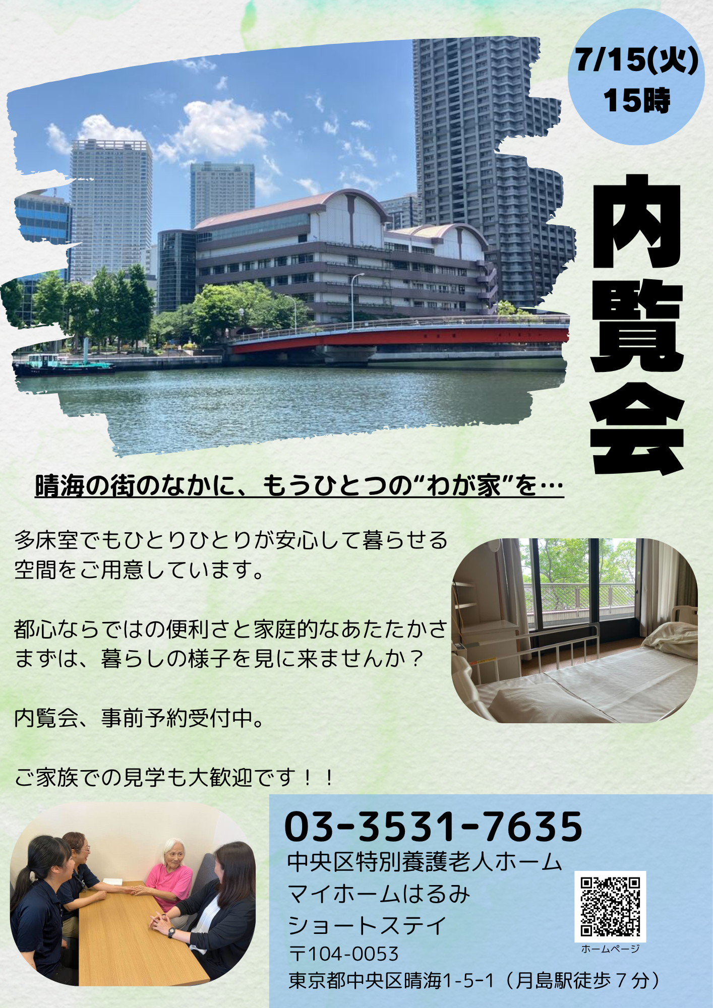 内覧会ご参加希望の方は、マイホームはるみ(03-3531-7635)までお電話をお願いいたします。