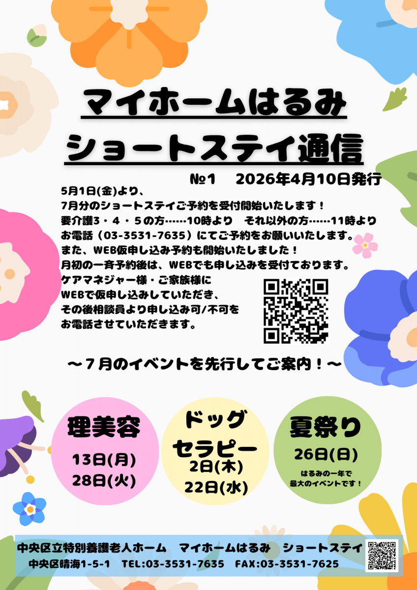 マイホームはるみショートステイ通信№1が完成いたしました!