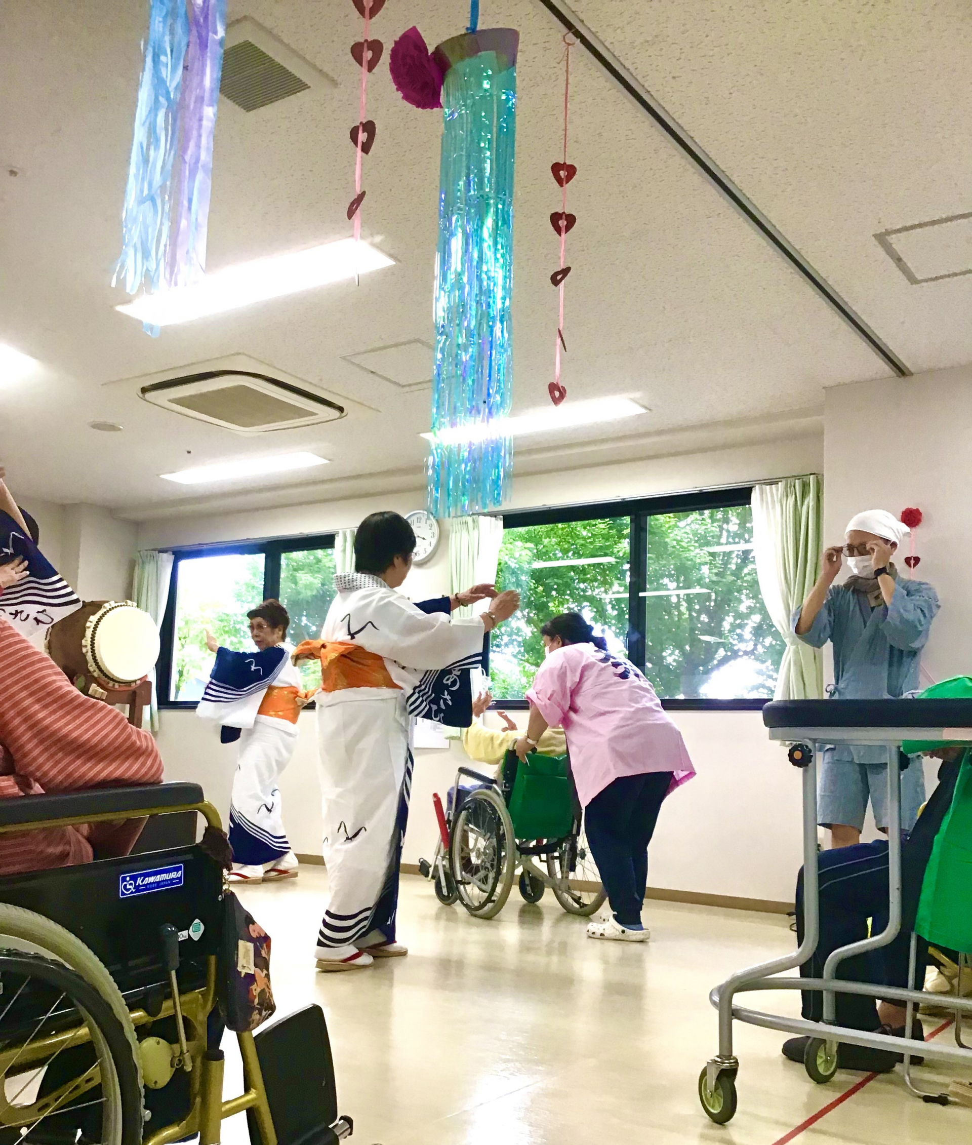 太鼓もドンドコドドン。ご家族様やご入居者様も一緒に手を合わせ楽しまれました。