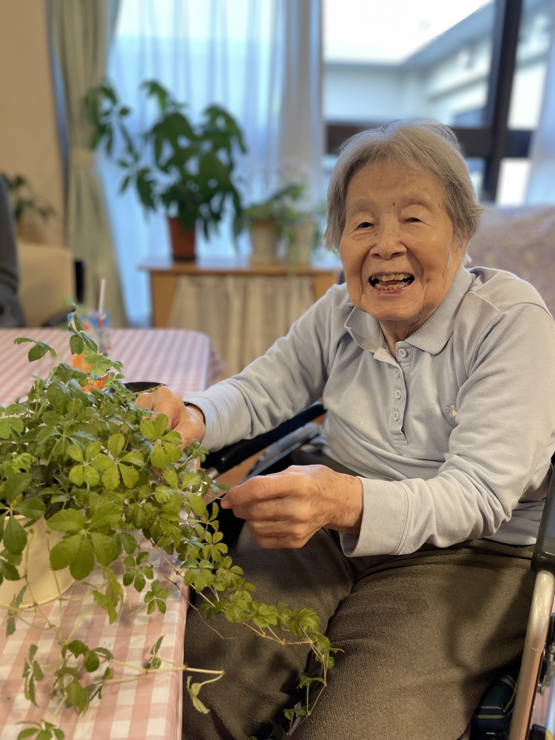 お手入れが終わり、ご入居者様にも素敵な笑顔がみられました。植物も喜んでいますね、ありがとうございます。 介護2課 土井