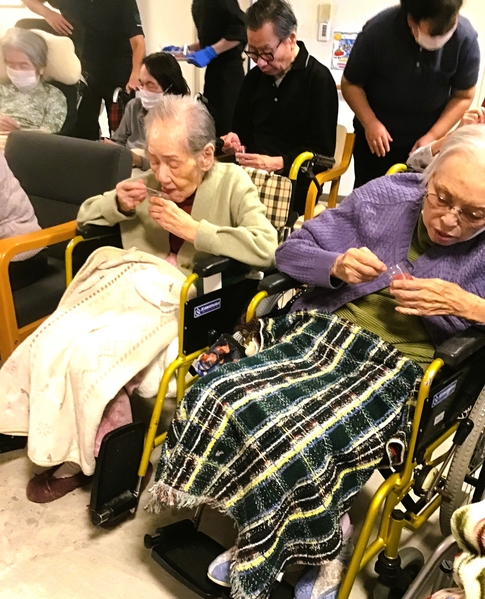 お楽しみの試食タイムです。「おいしい、おいしい」とみなさん笑顔で召し上がっていました。おいしい食べ物は気持ちをほっこりさせてくれますね^^