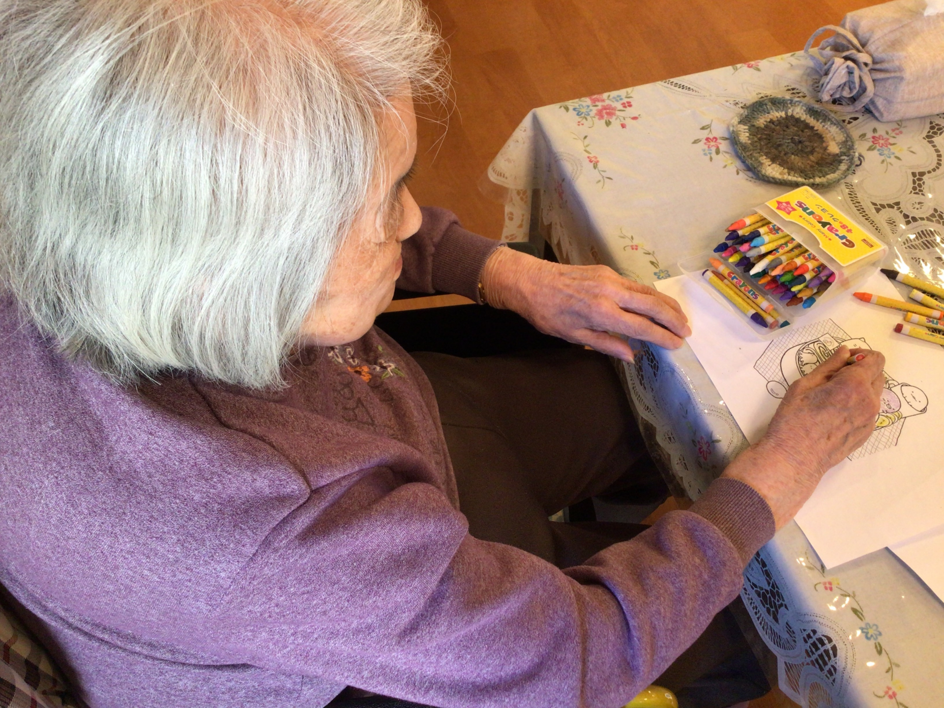 職員と一緒に色塗りをしていただきました。