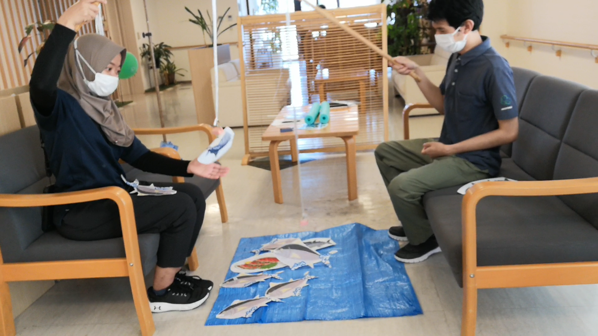片麻痺の利用者様を想定したゲーム参加です。
