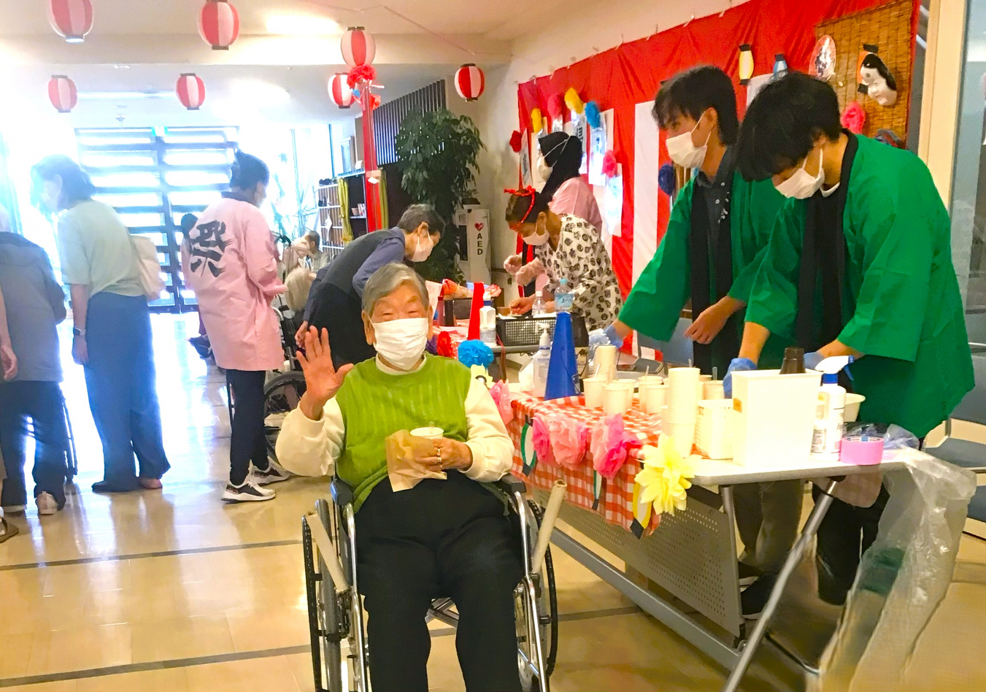 川井町内会の女性部の方々はすてきな舞でお祭りを盛り上げてくださいました。町内会様からは太鼓を、さくら苑様からはテントをお借りすることができました。