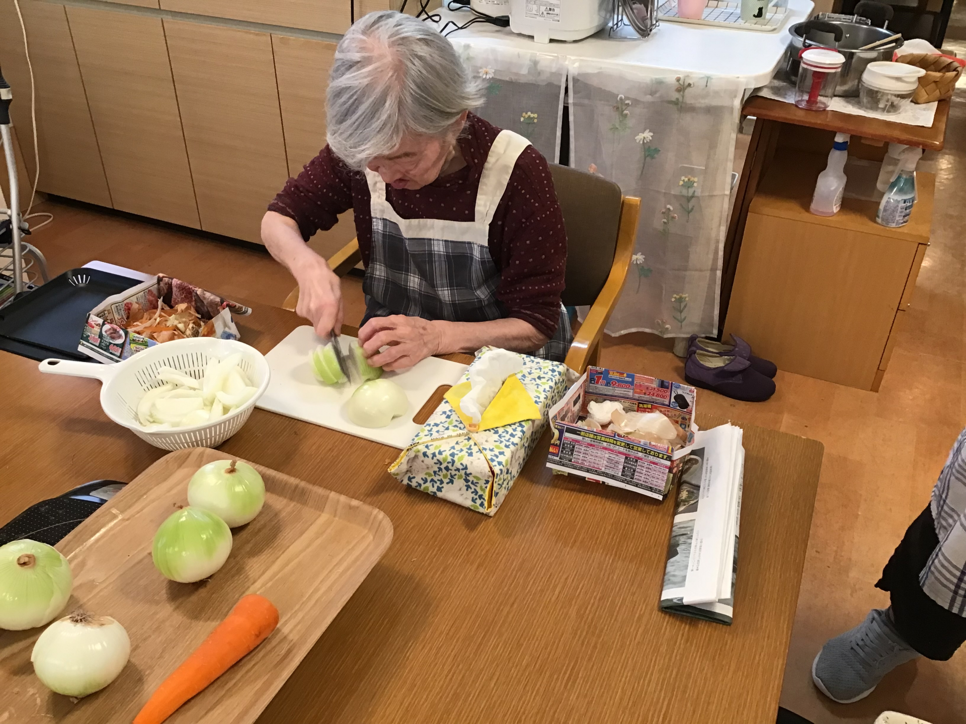 野菜を剥いて、切って、包丁さばきは現役です。