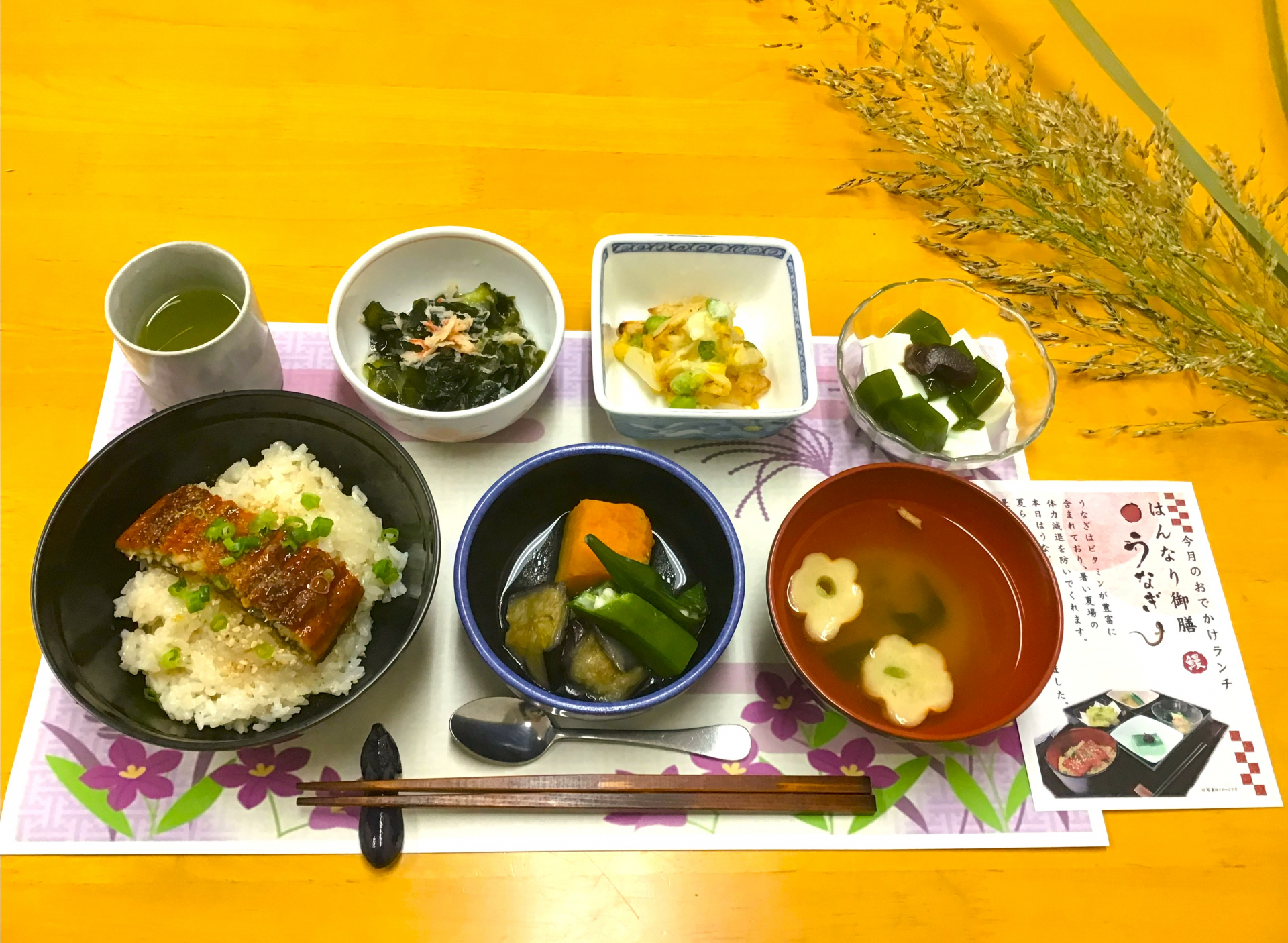 その季節にビタミン類豊富なうなぎで、体力減退防止に努めていきましょう!の願いを込めて、はんなり御膳を提供いたしました。