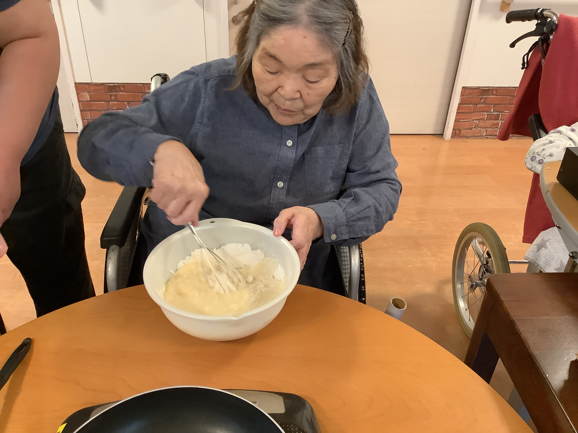 2025.10.16 活動報告 ホットケーキを作りましょう! Tweet シェアする 本日おやつ時間に皆んなと一緒にホットケーキを作りました♪🥞とても楽しそうで、笑顔も沢山見られました。とても温かい時間になりました♪ なつめユニットF 前の記事 2025.10.17 活動報告 季節のどんぶり 次の記事 2025.10.11 活動報告 お誕生日おめでとう🥳🎂 一覧へ戻る