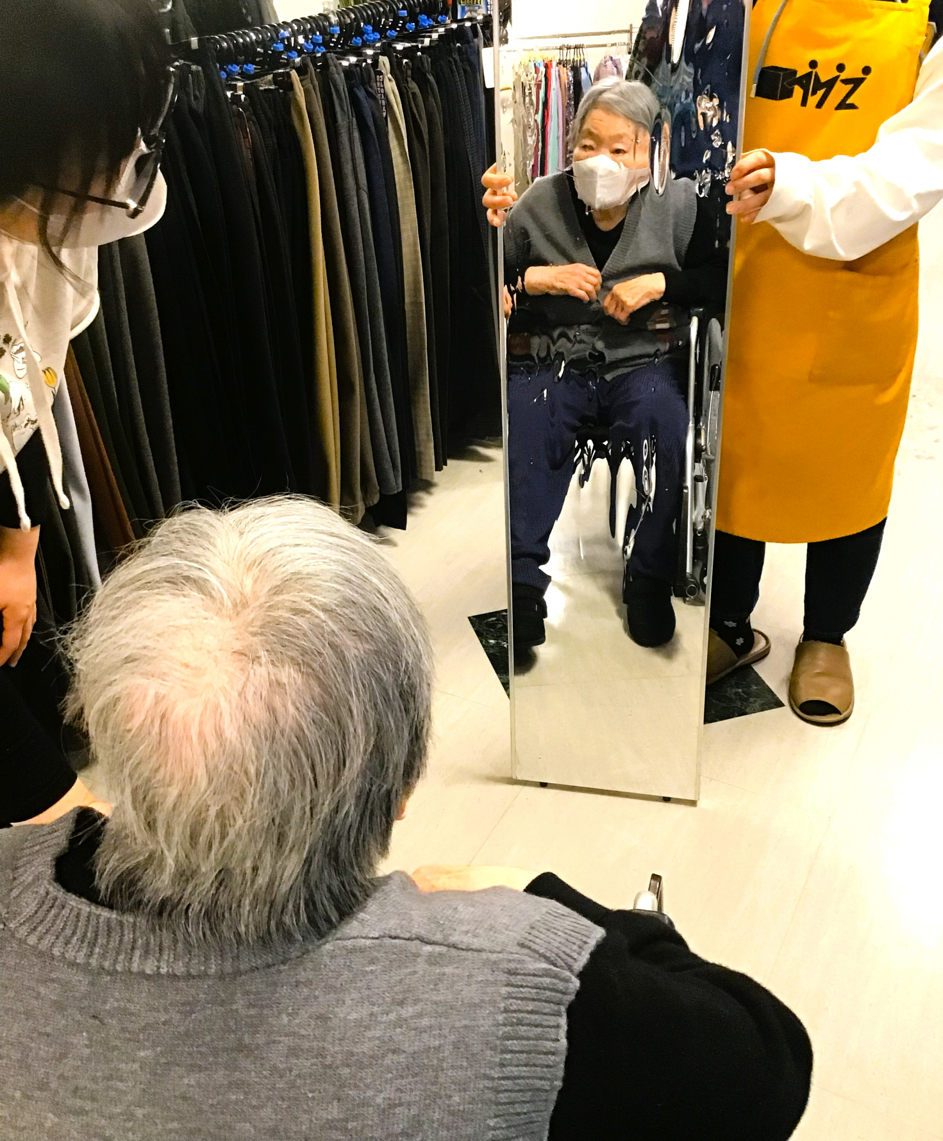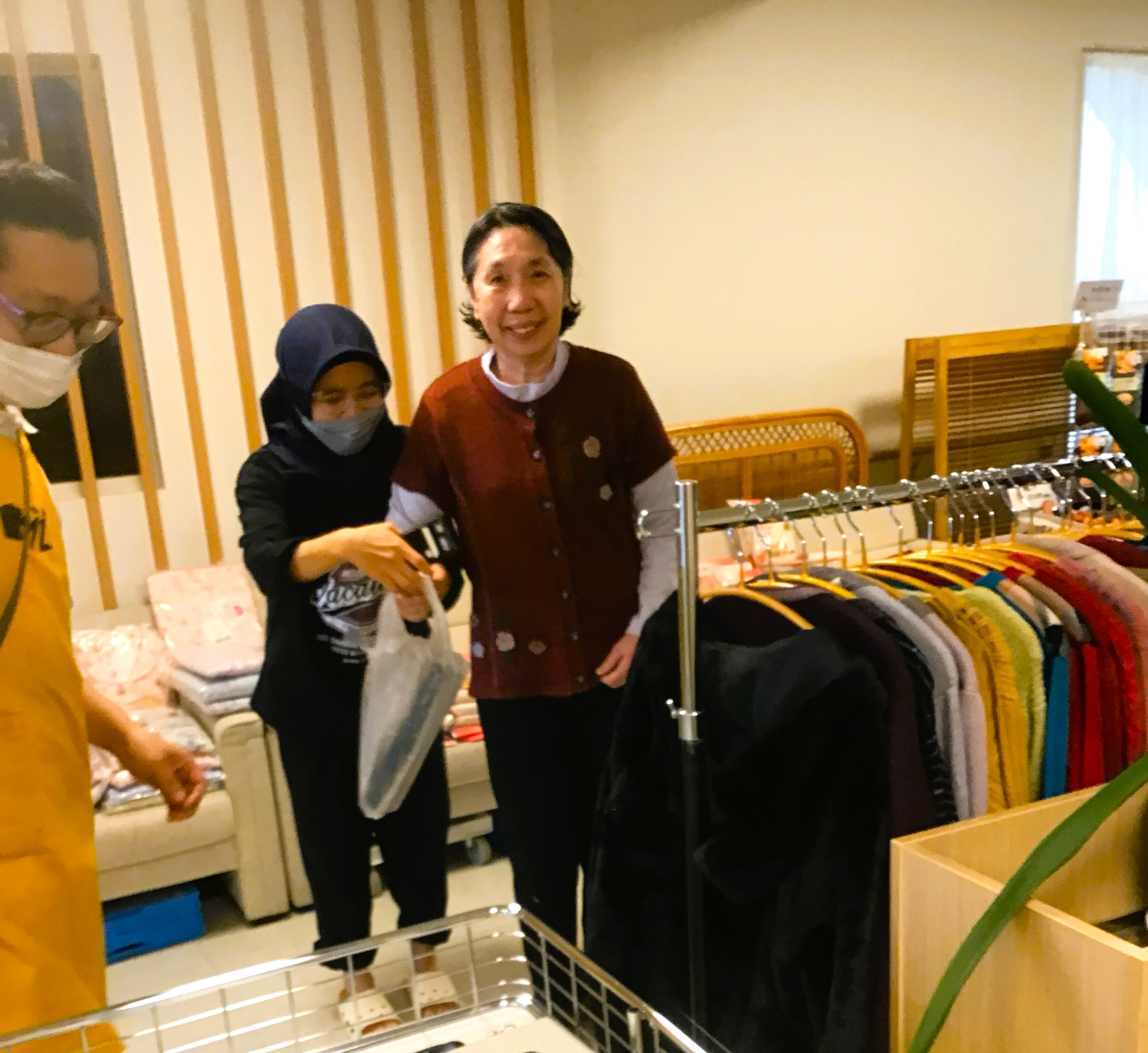先日、お買い物イベントとして、アミュージンさんが来てくださり、冬物の洋服やパジャマなど試着をしたり、鏡を見て合わせたりしながら買い物を楽しまれました。