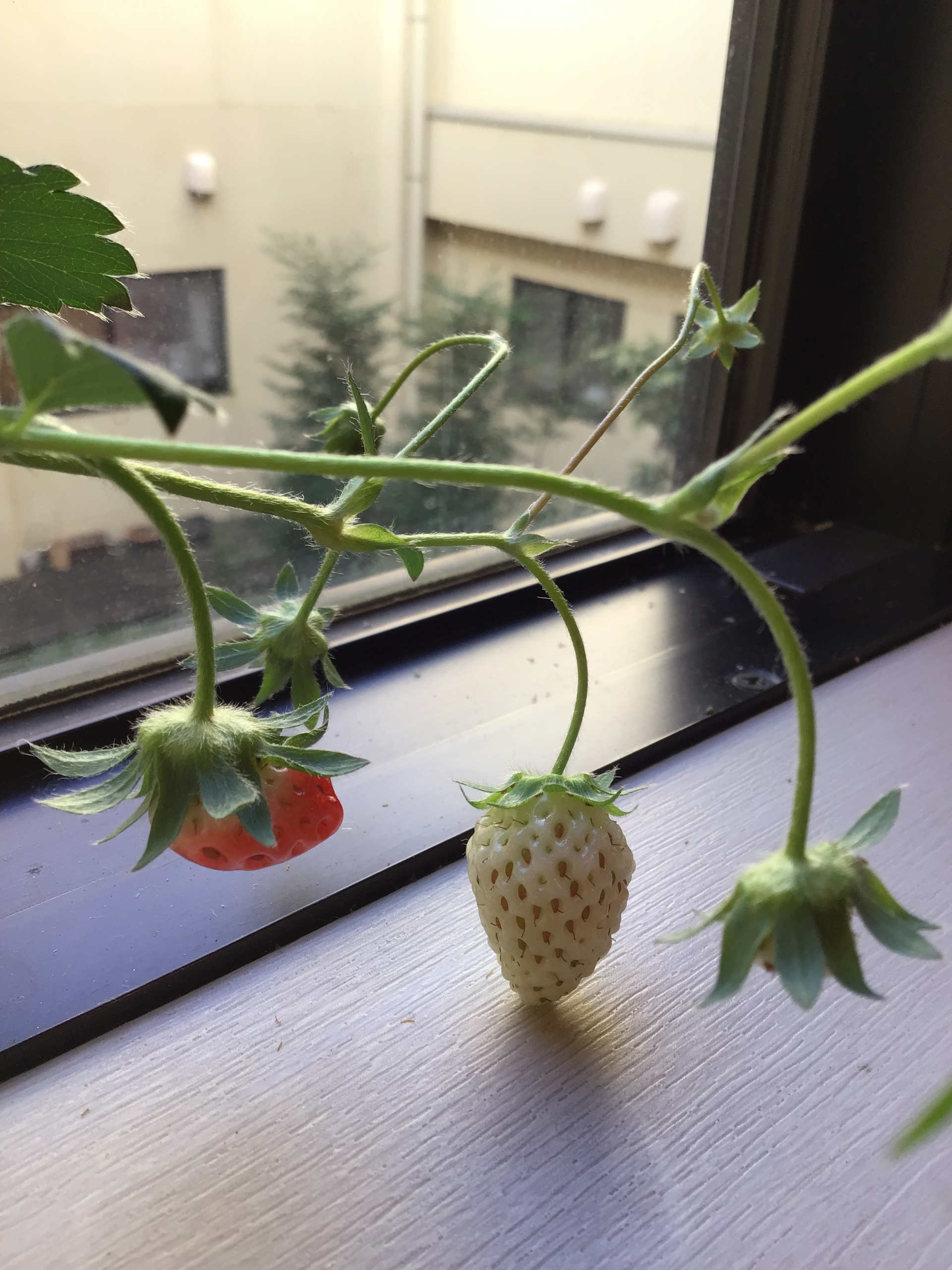 ユニットで育てているいちごが、少しずつ赤くなり始めました。