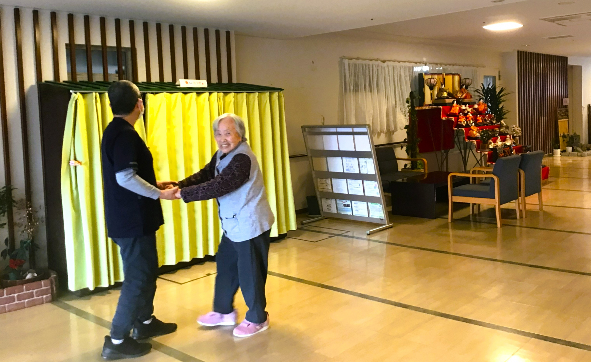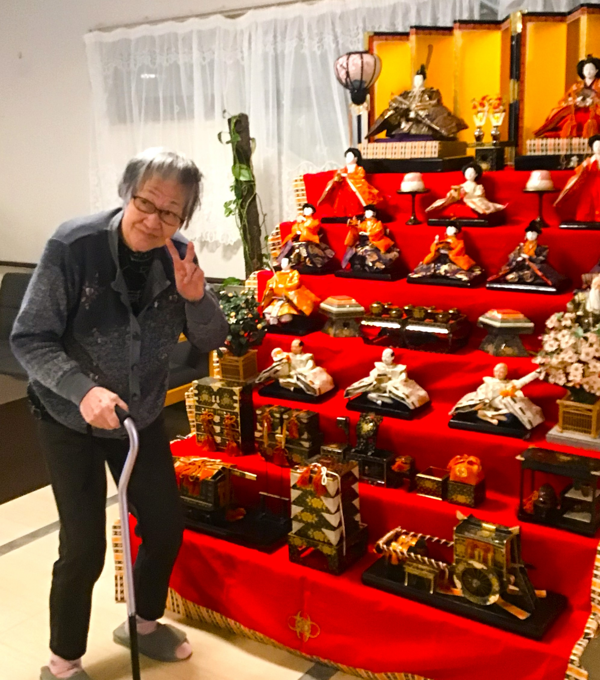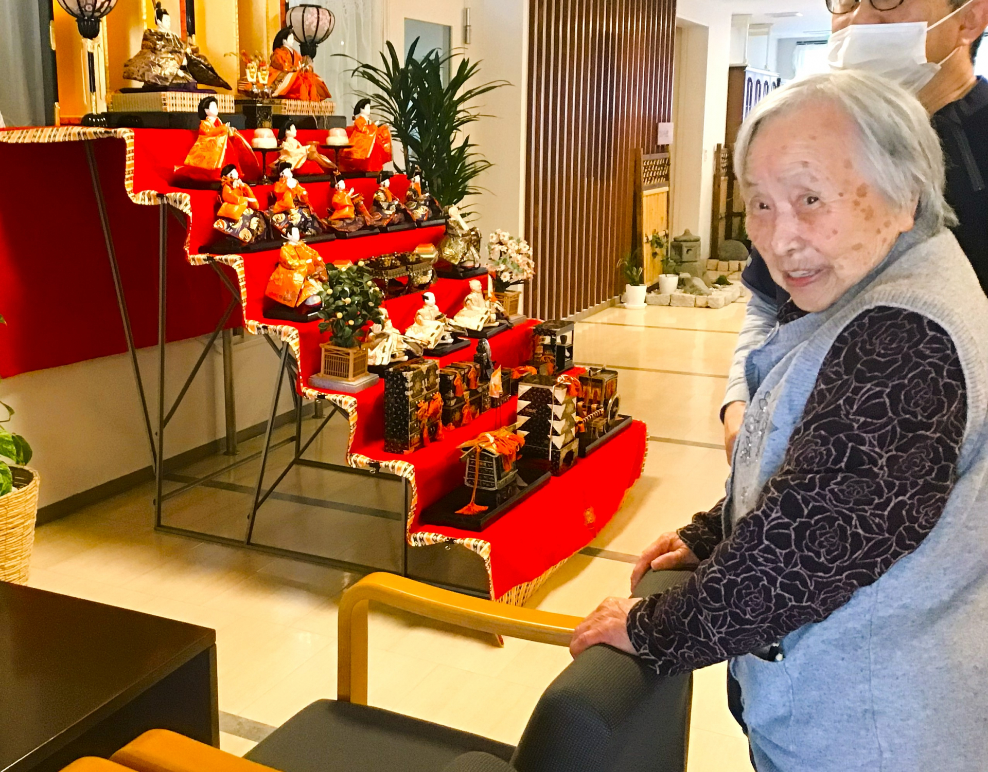 現在かわいの家の1階にひな人形を飾ってありますので、散歩がてら楽しまれています。