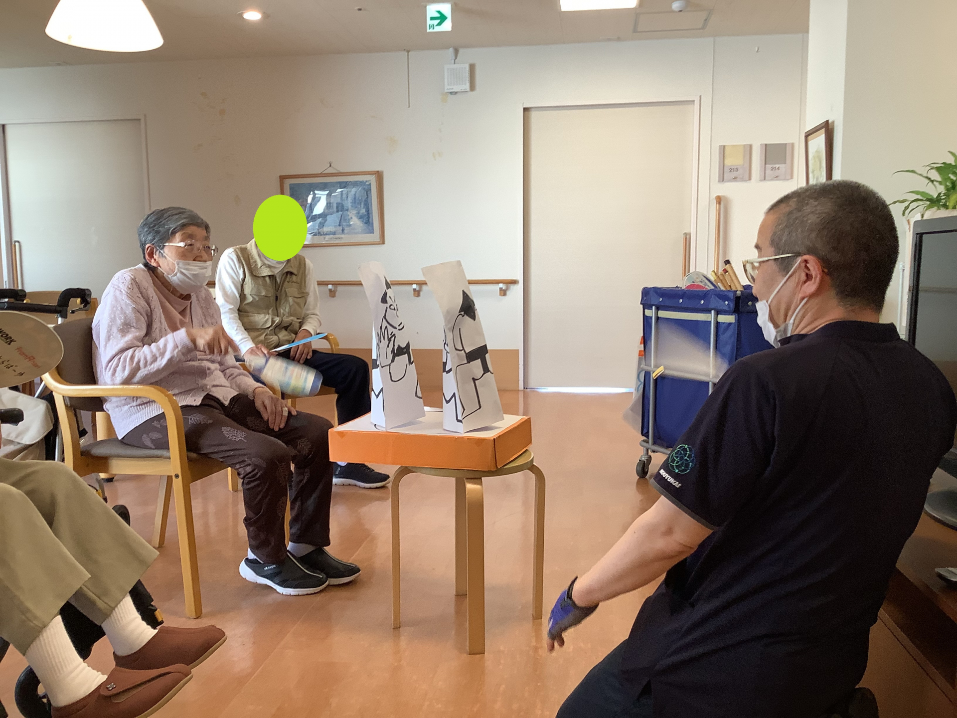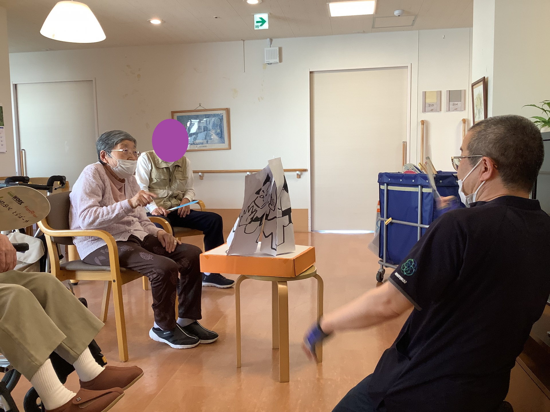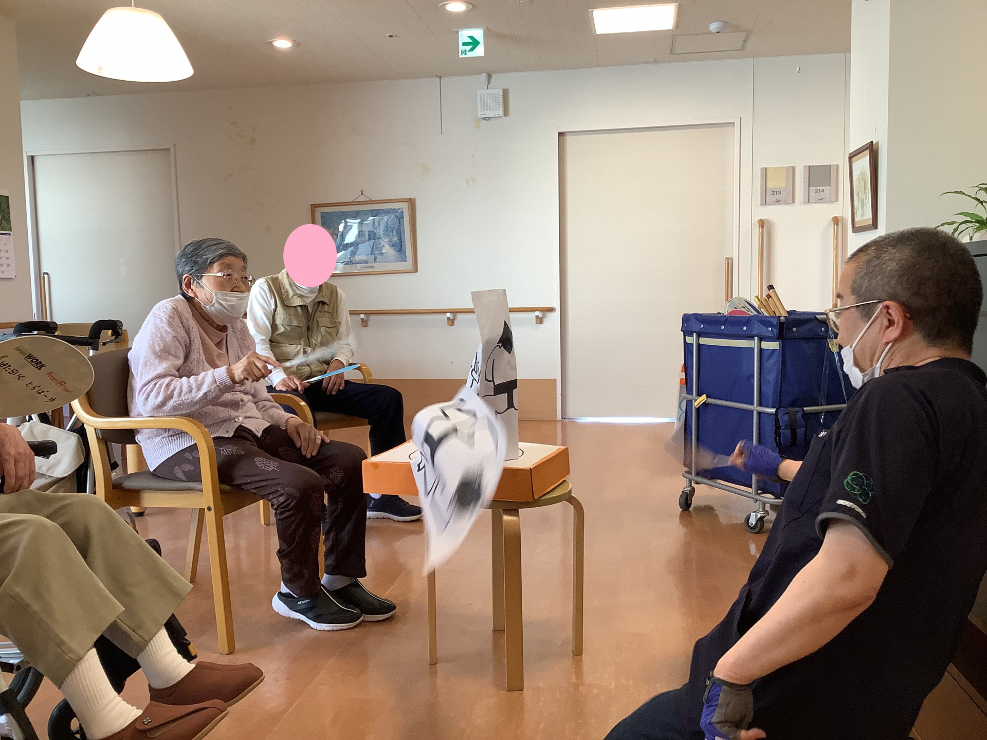 職員と利用者の取組の時は、大きいうちわと