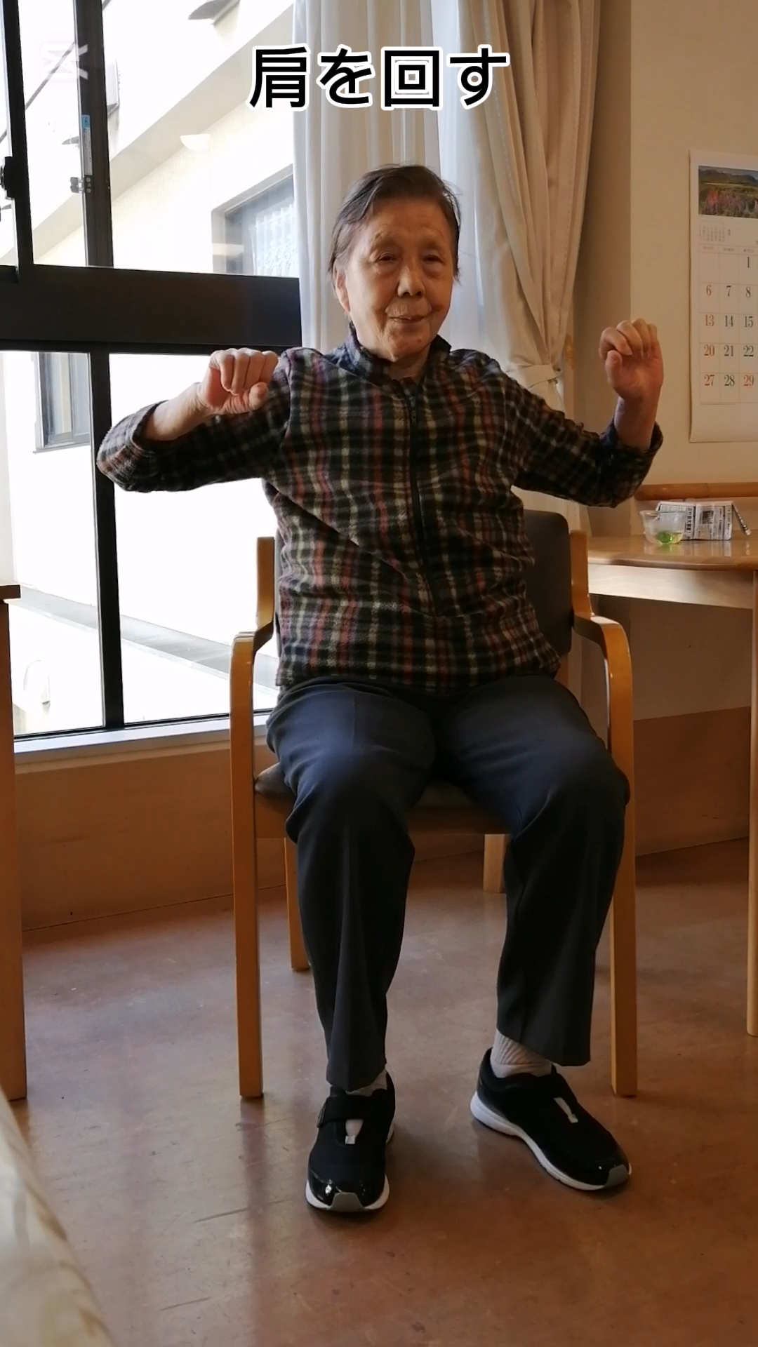 ♪回してちょうだい…「肩回し」♪知らせられたり…「肩上下」