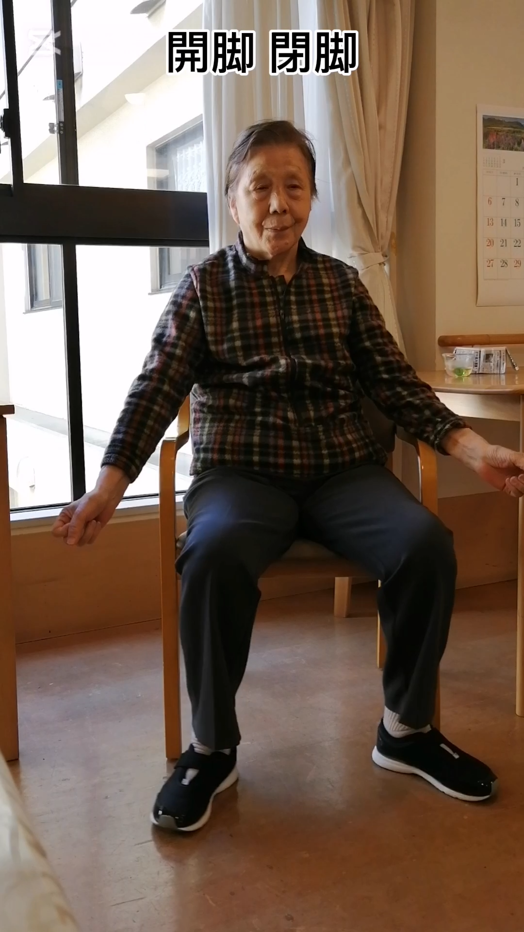 2番♬とんとん…「太もも叩き」♬あれこれ面倒…「開脚」