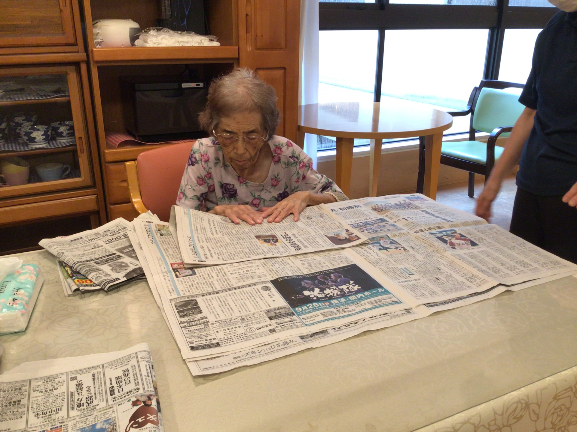利用者様から「何かお手伝いできる事ある?」と声をかけてくださったので、タオル巻きと新聞折りをお願いしました。終わった時「ありがとうございます。助かりました。」とお伝えすると「少しでも役に立てて嬉しいです。」と笑顔で話してくれました。頼りにしてくれた事が嬉しかったのですね(^^)