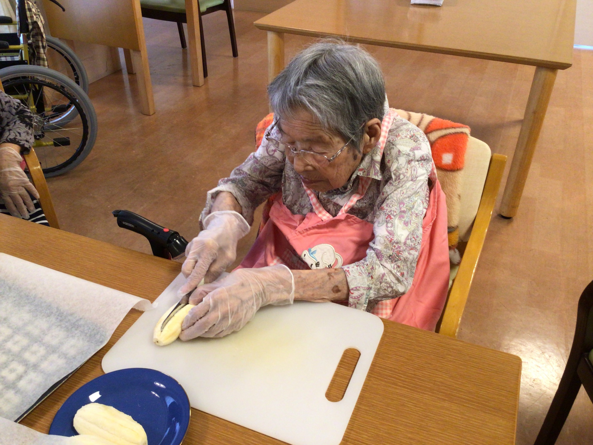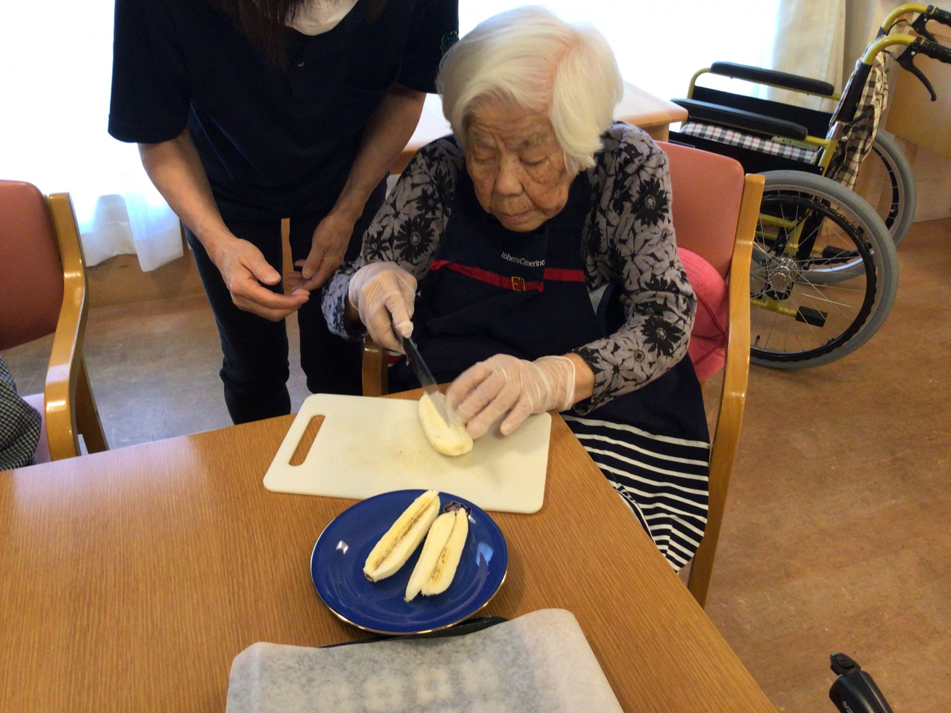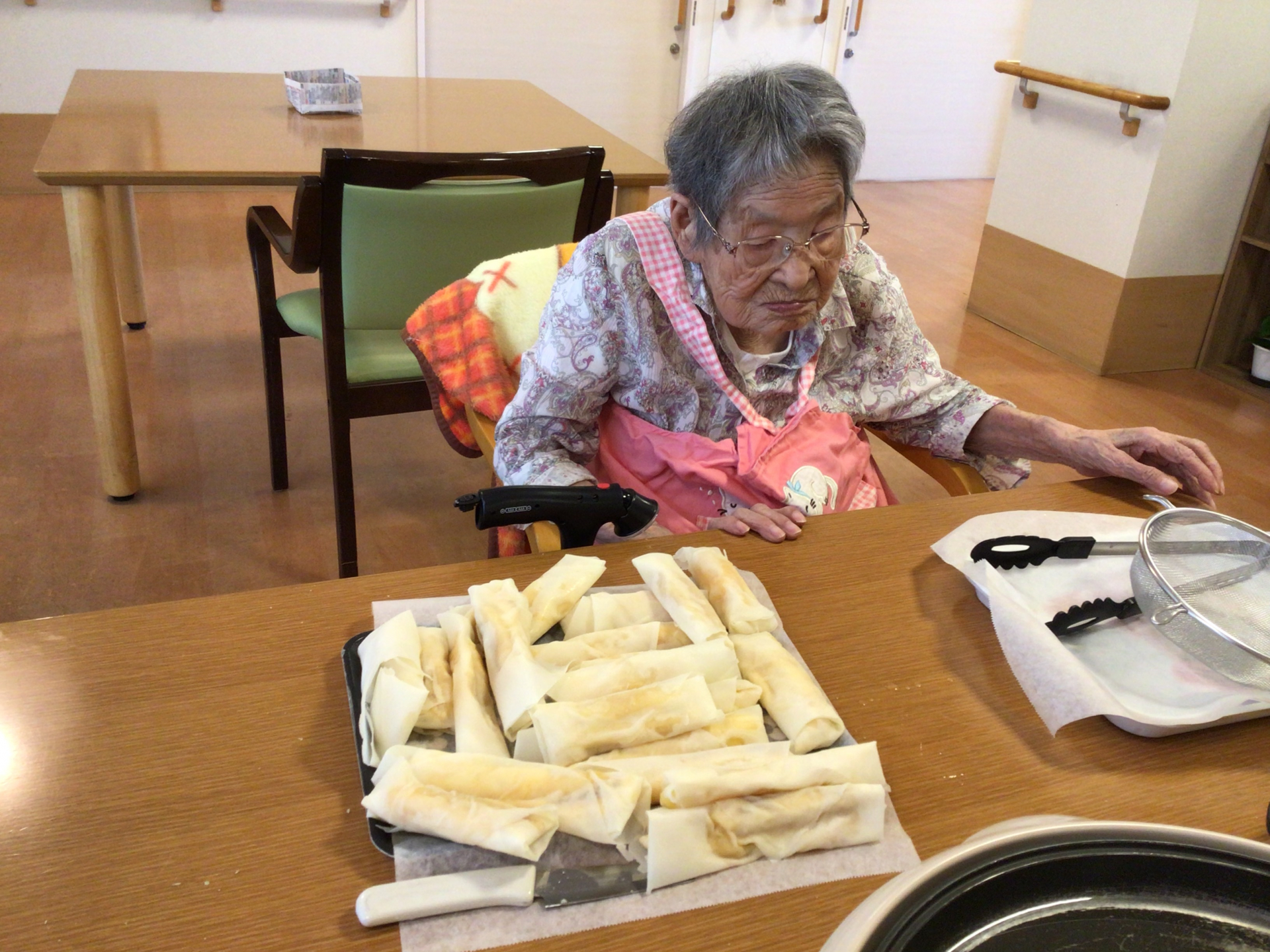 フィリピンのおやつをご利用者の皆様にご紹介しました。フィリピンの「トロン」とは調理用のバナナ「サババナナ」とジャックフルーツと砂糖を春巻きの皮で包んでプライパンで揚げる。ご利用者の皆様が初めてフィリピンのおやつを作ってとても喜んで美味しく召し上がりました。「フィリピンのおやつを味わいして嬉しいですね」とおっしゃいました。