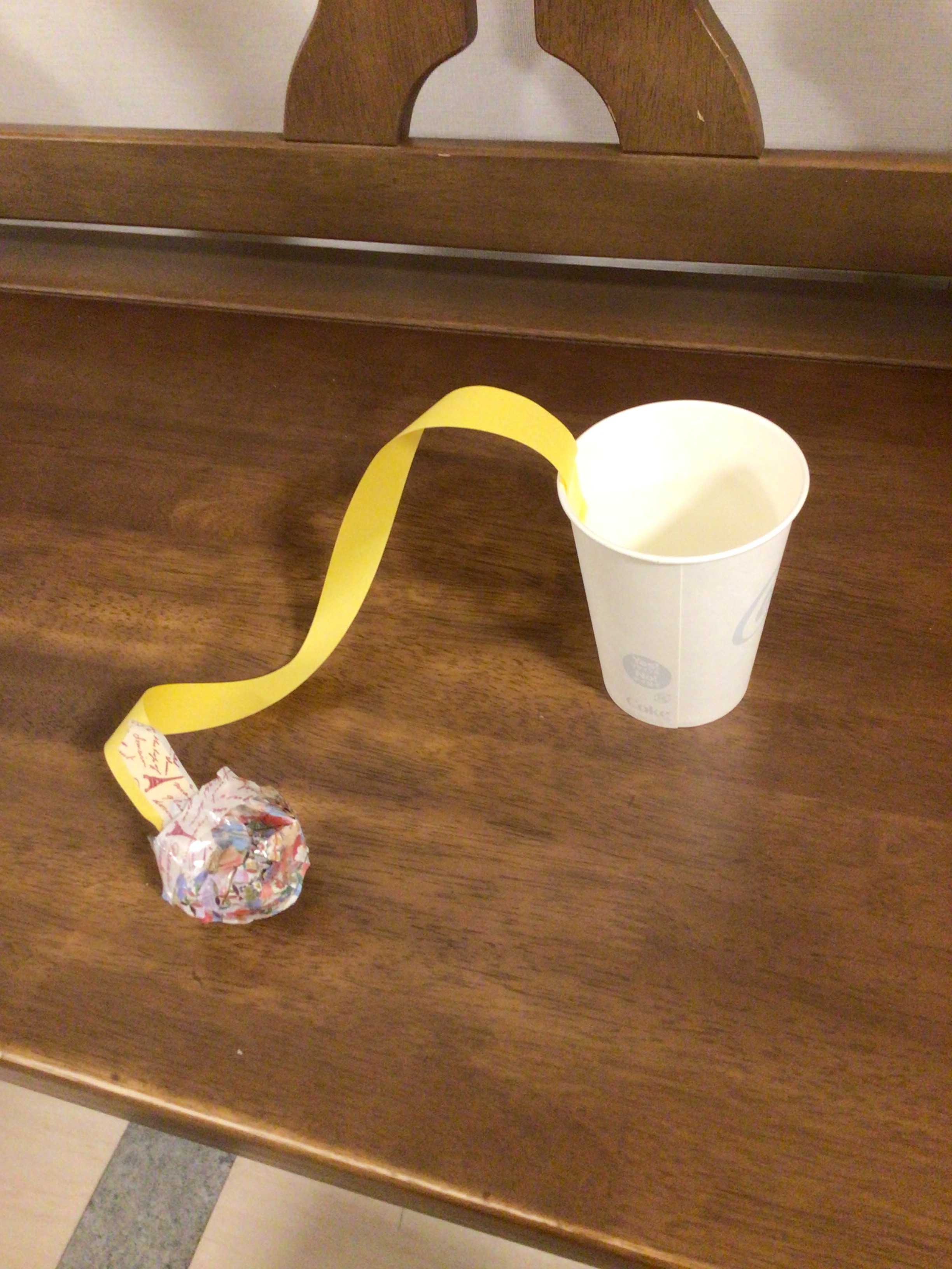 本日の遊びリテーション「作業療法+紙コップけん玉」を