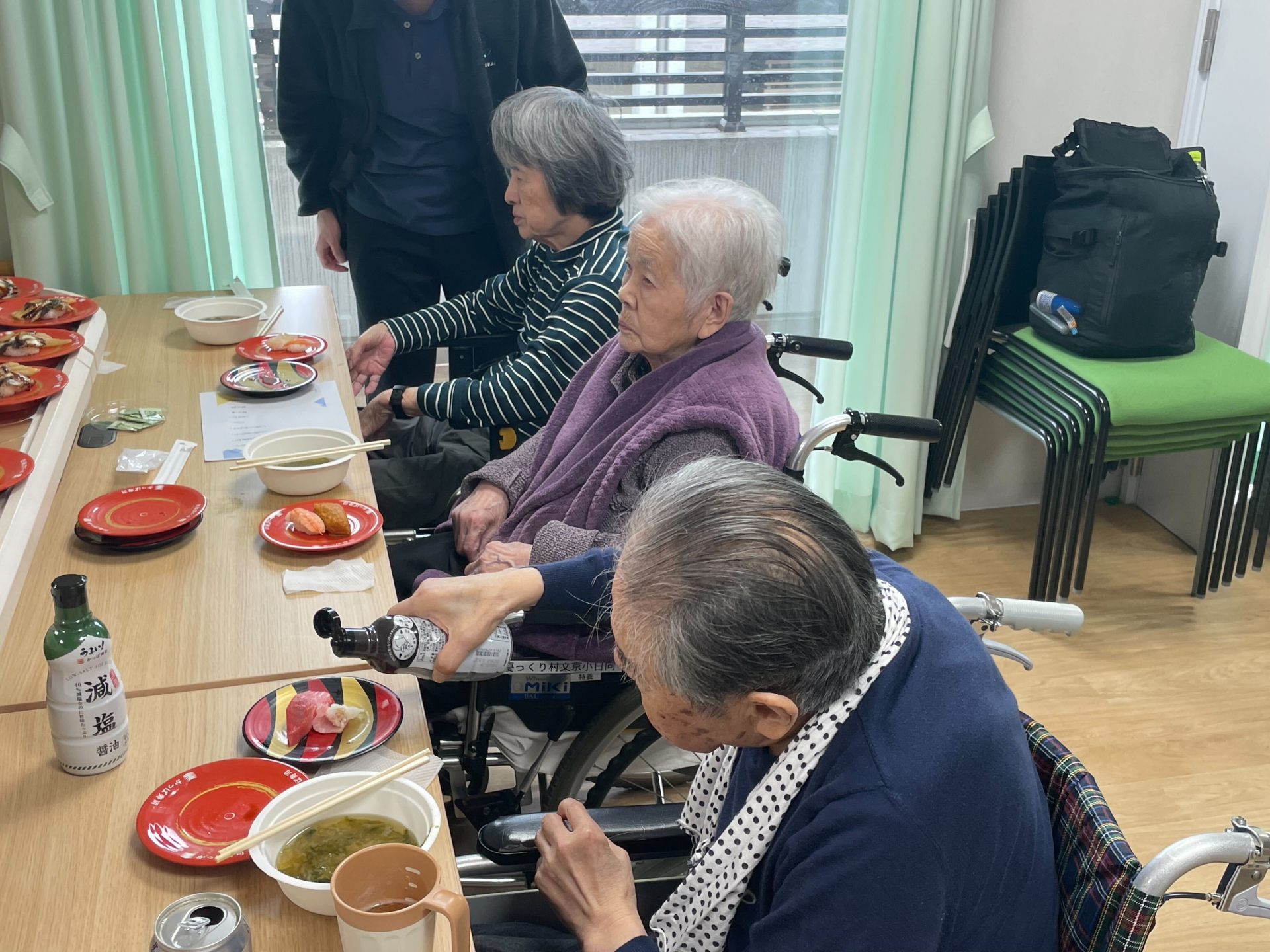 いやぁぁぁ久しぶりだわ!と手が止まらない方も数名。 とあるご入居者からは、あのお寿司屋さんは今後あそこで商売するのかい?また行きたいから連れてってね。 と・・・ ごめんなさい。出張で来てもらったのでずっとあそこにはいないんです・・・とお伝えすると。 じゃあまた呼んでね!と。 また呼べるように頑張ります!