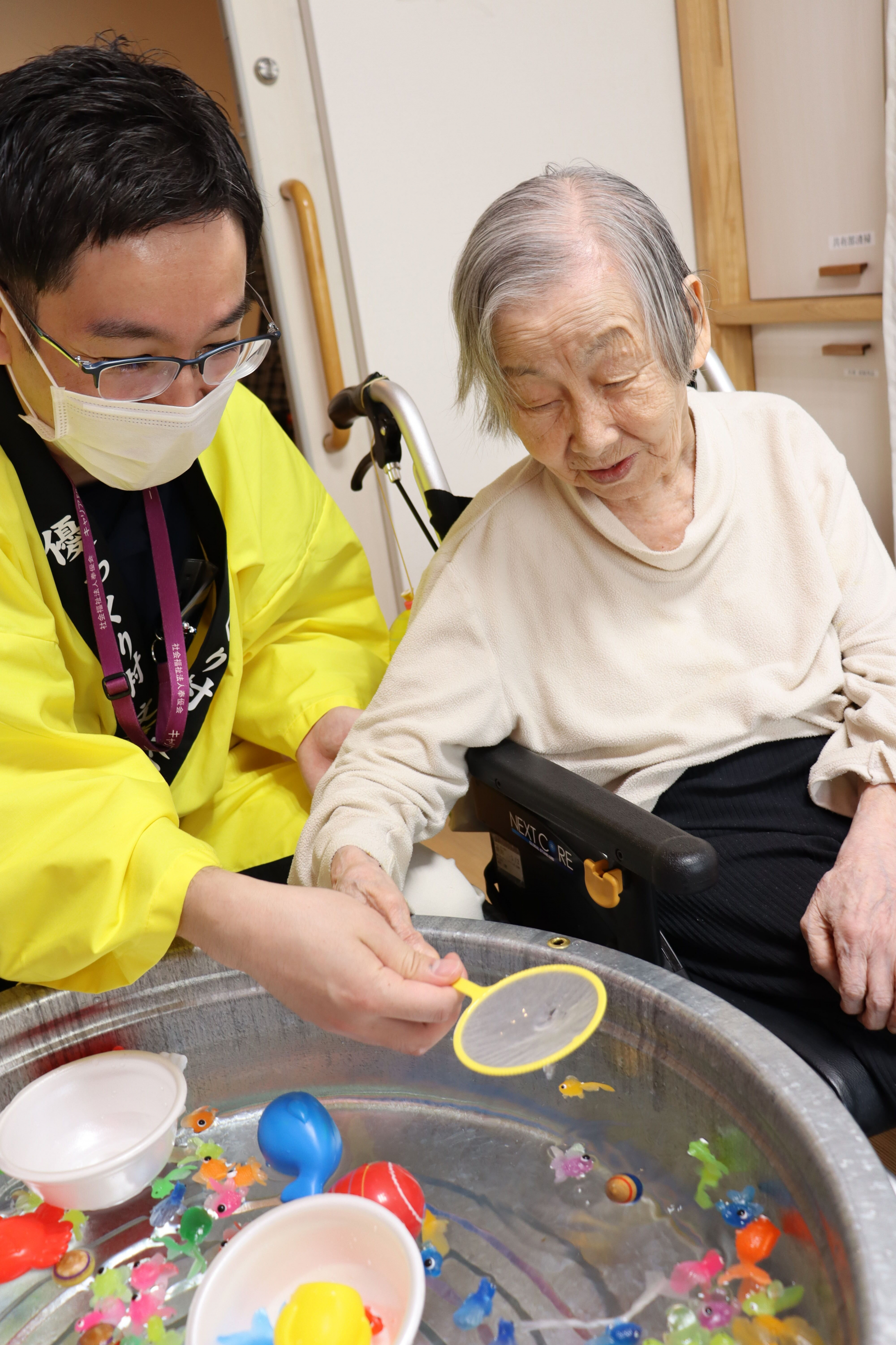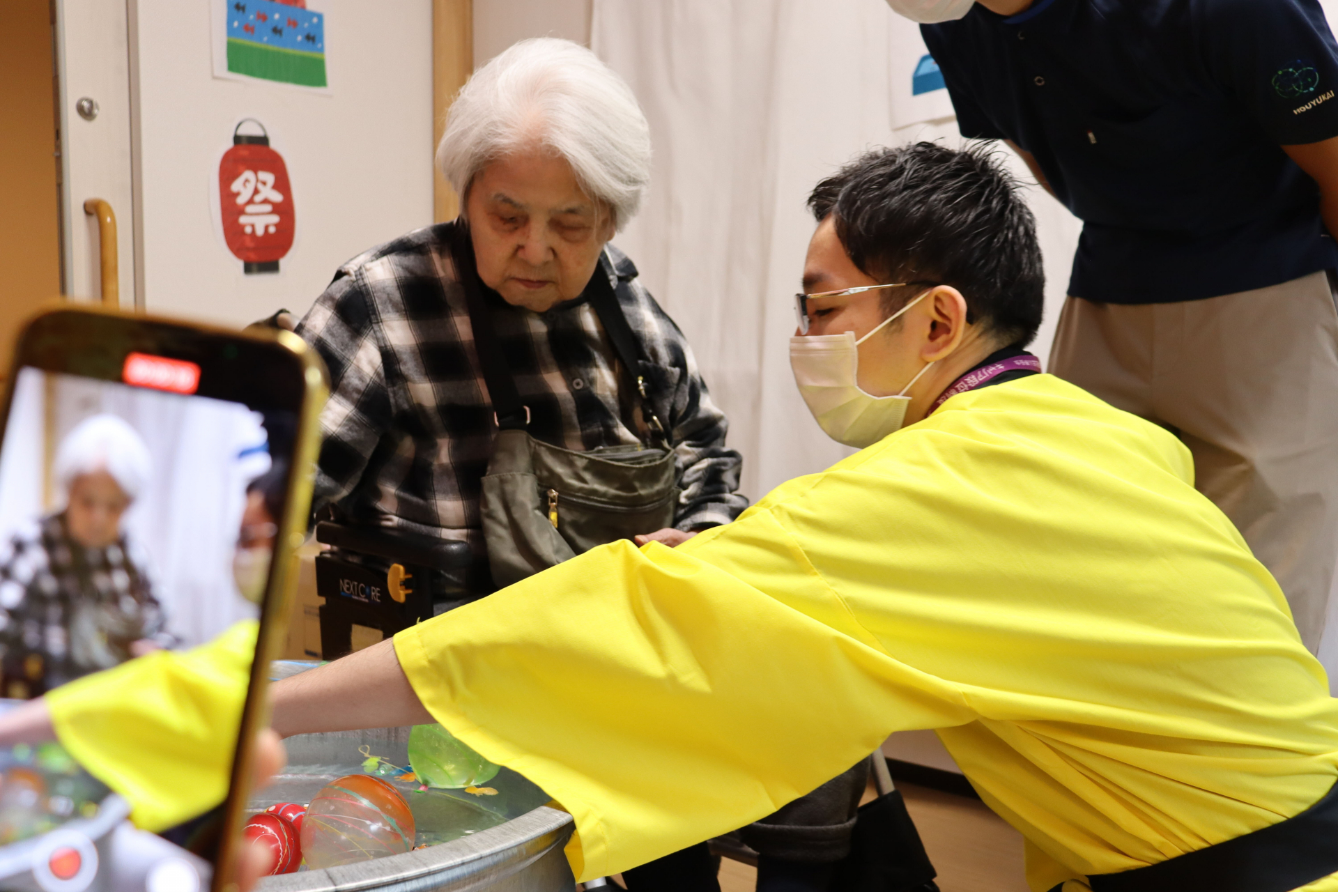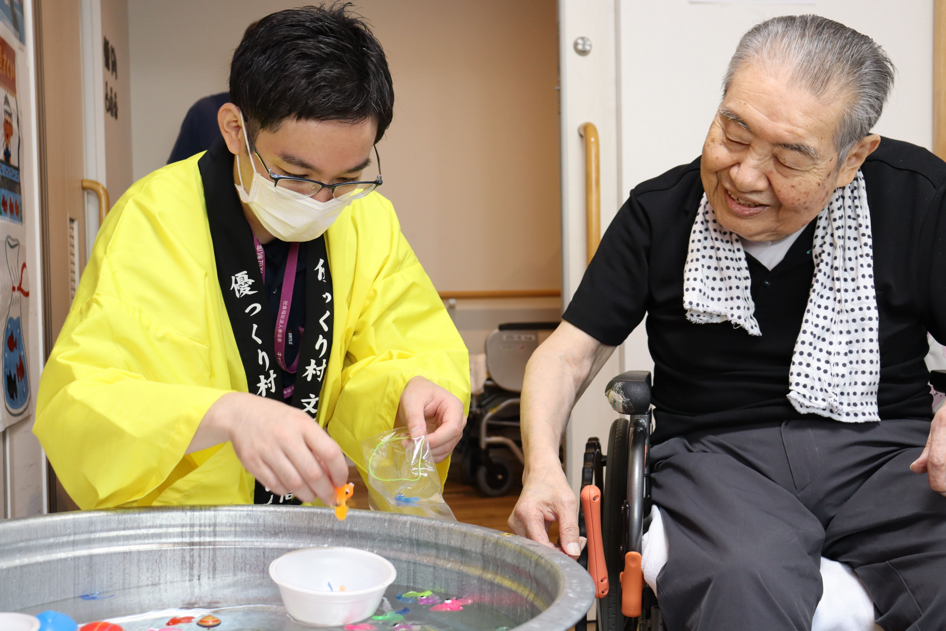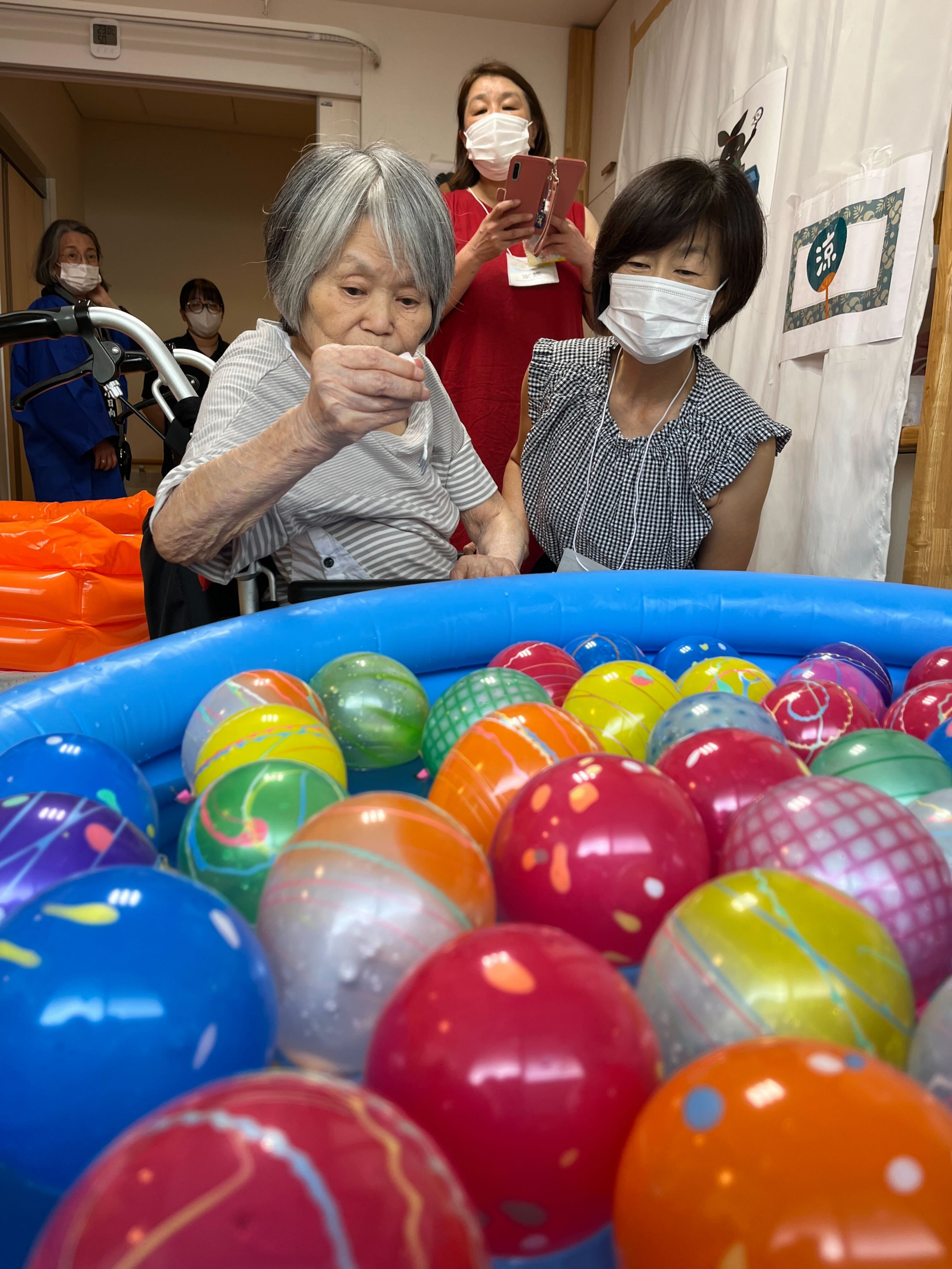 今回は振り返りの回!特養で企画・実施したヨーヨー釣り&金魚すくいの写真を見ていきましょう(∩´∀`)∩
