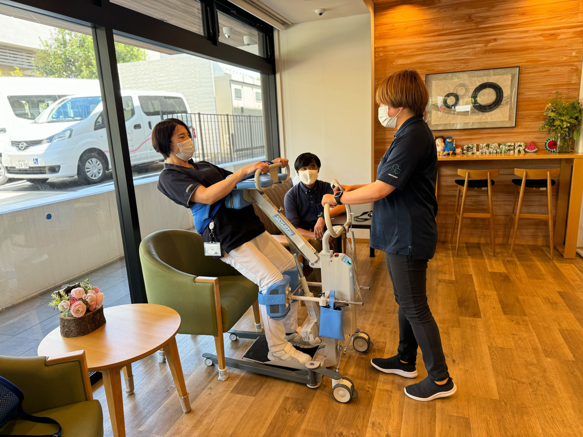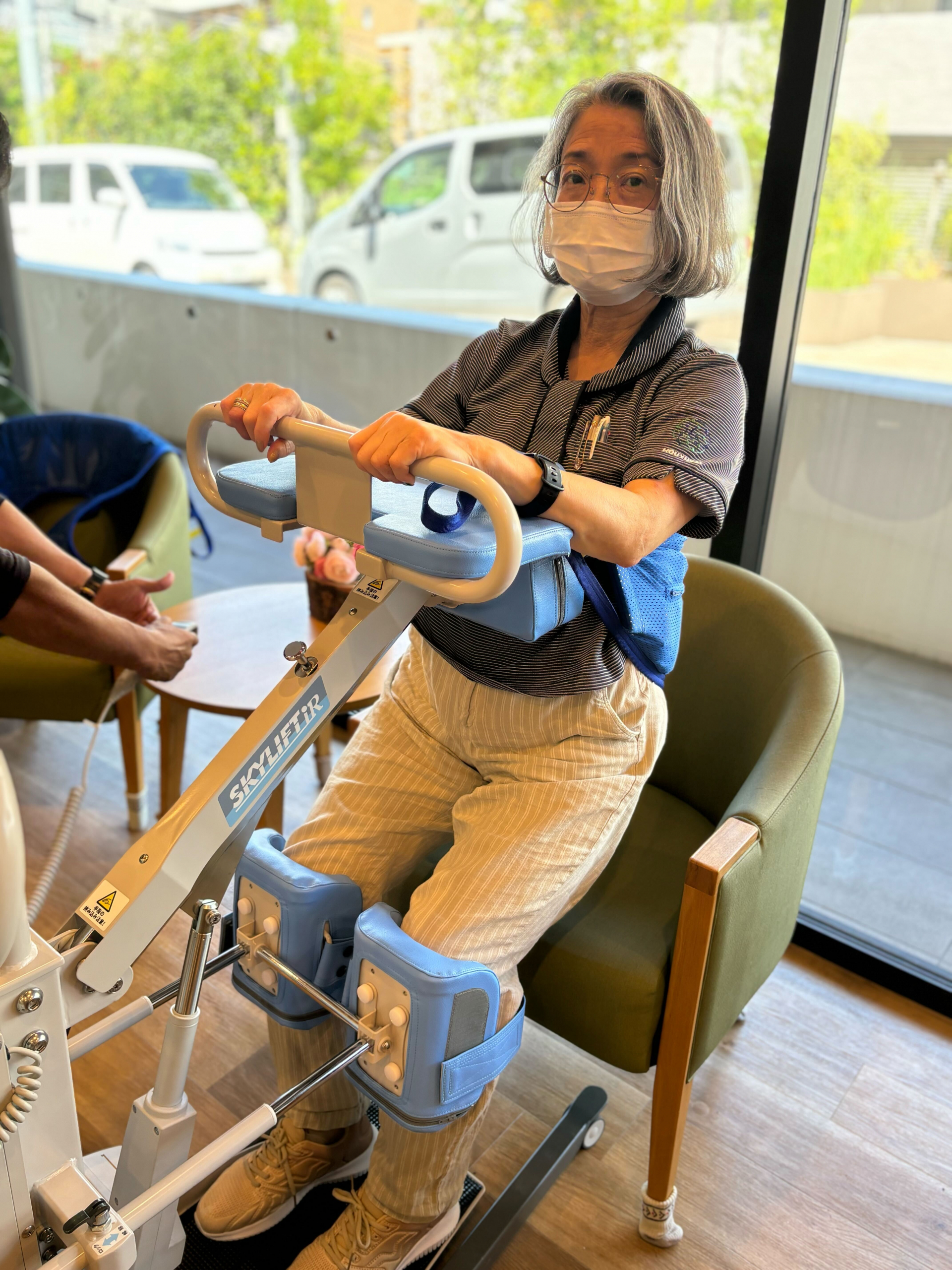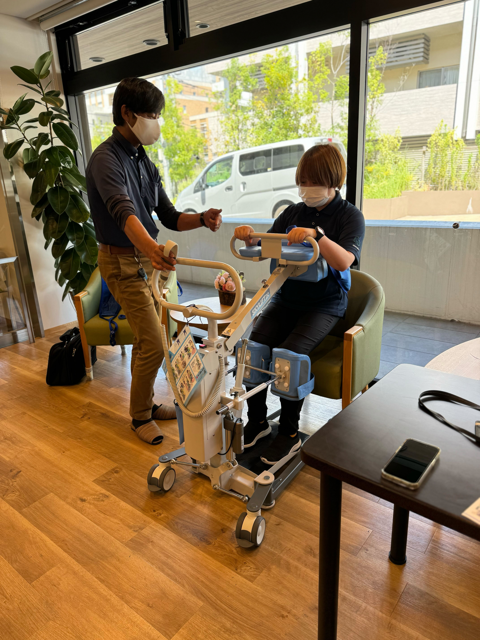 移乗などで腰など痛めやすい中、こういう機械があれば安定性を持って介助が出来ますし身体を痛める心配もないので良いですね。