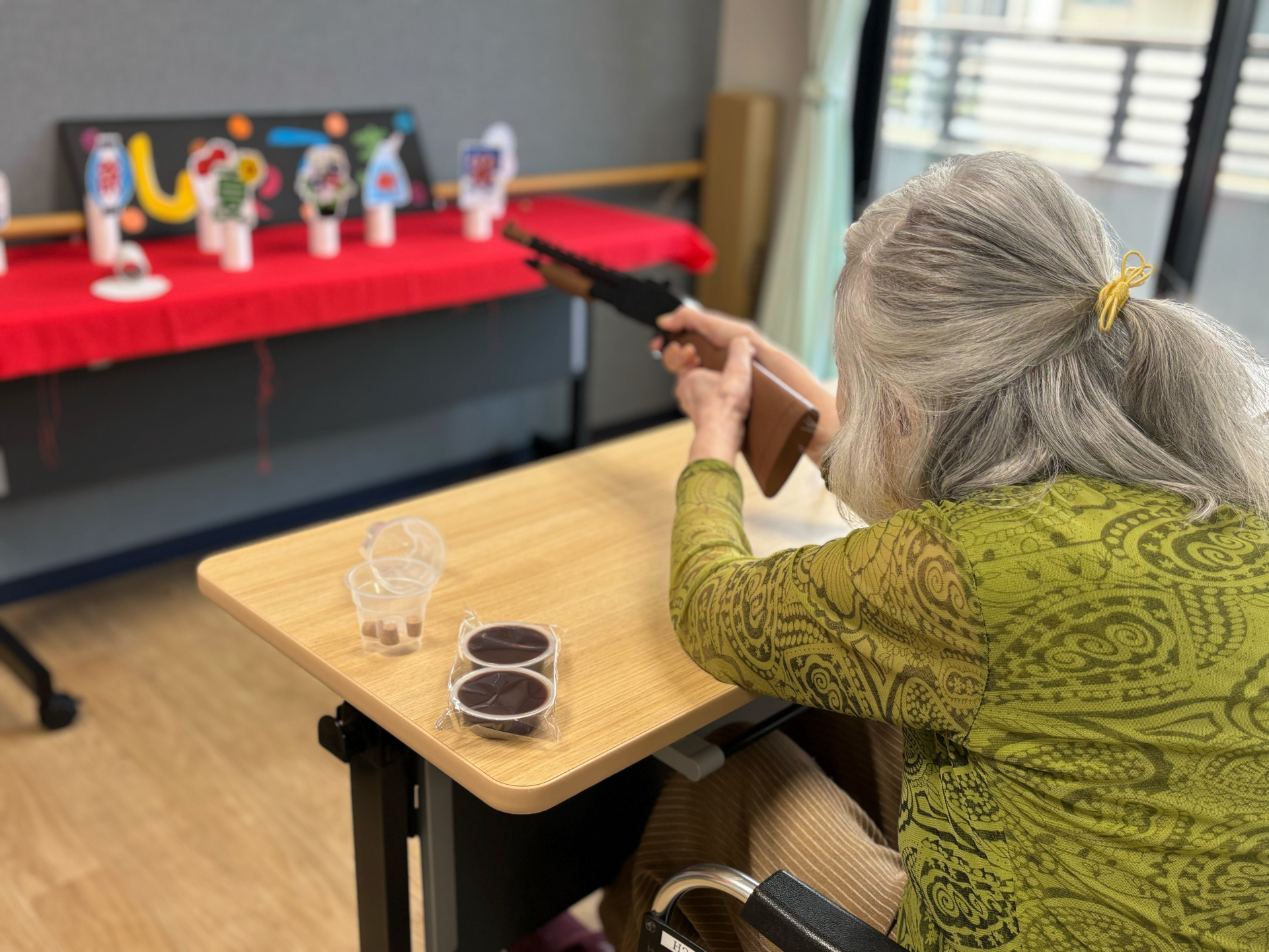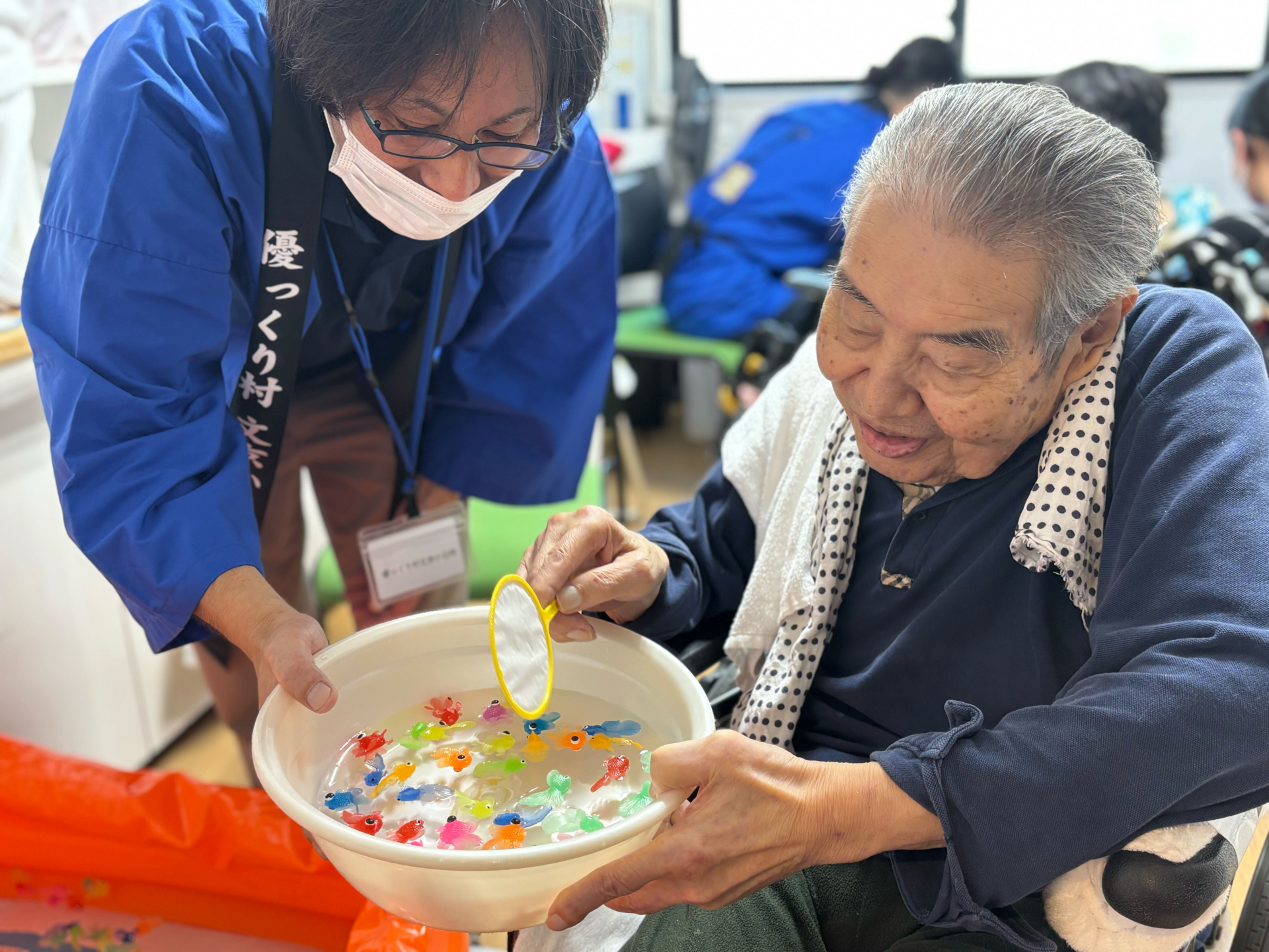 前日までにヨーヨーづくりや施設内の飾りつけ等の準備を済ませ、当日は職員総出で出し物対応やご利用者様の案内に当たりました。