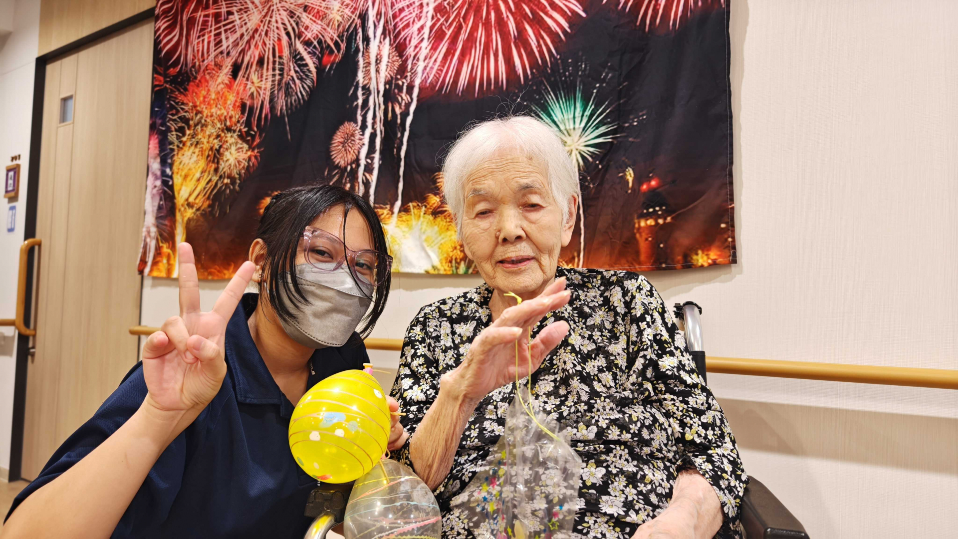前日までにヨーヨーづくりや施設内の飾りつけ等の準備を済ませ、当日は職員総出で出し物対応やご利用者様の案内に当たりました。