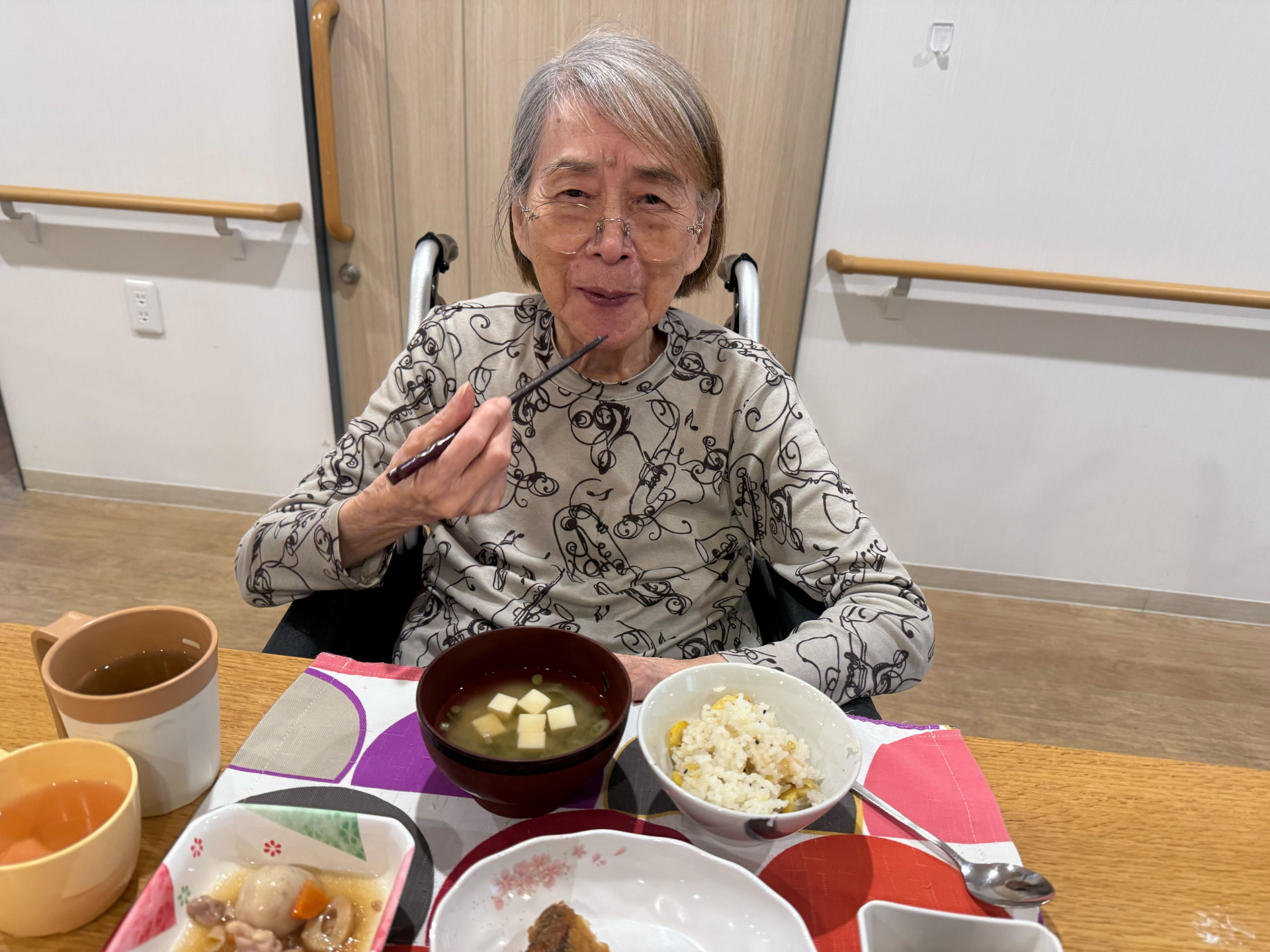 食堂には、炊き立ての湯気とほのかな甘い香りが広がり、皆さまの表情にも自然と笑顔が見られました。