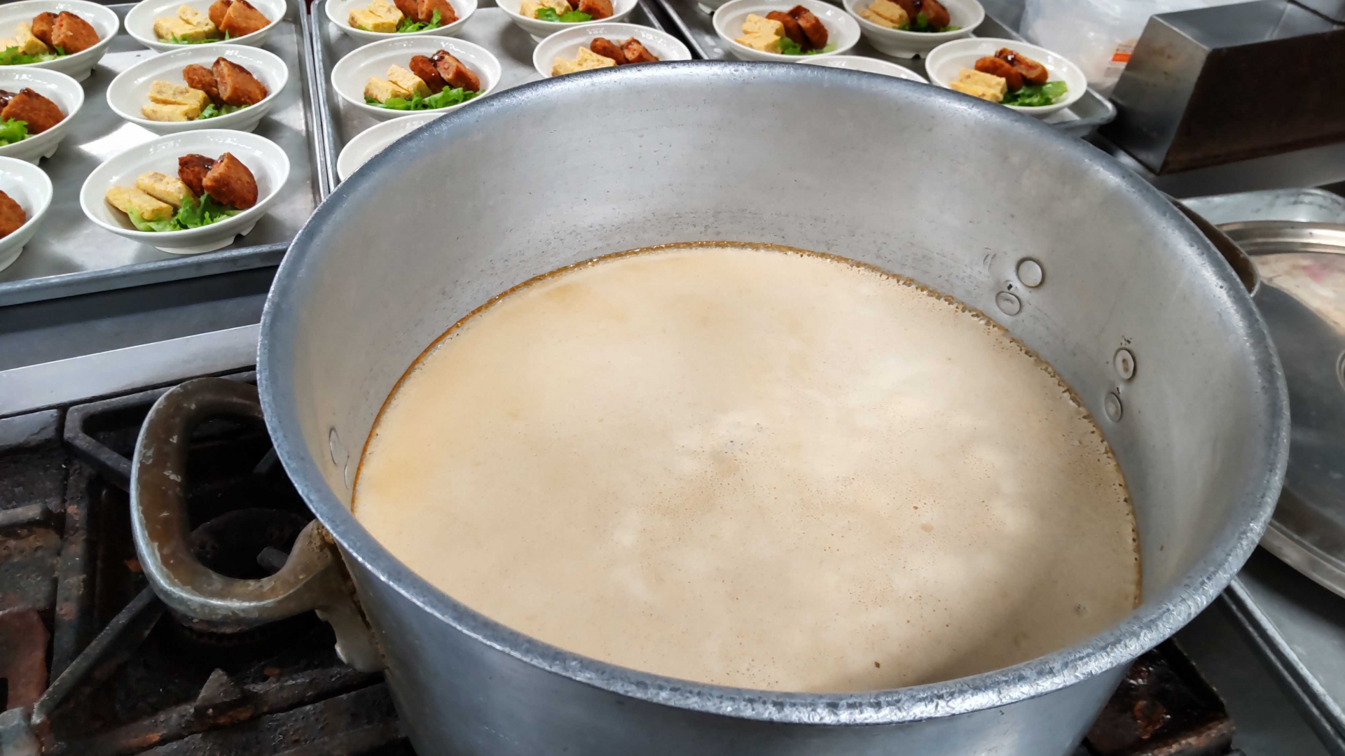 人数が多いのでみそ汁のスープも大量です。