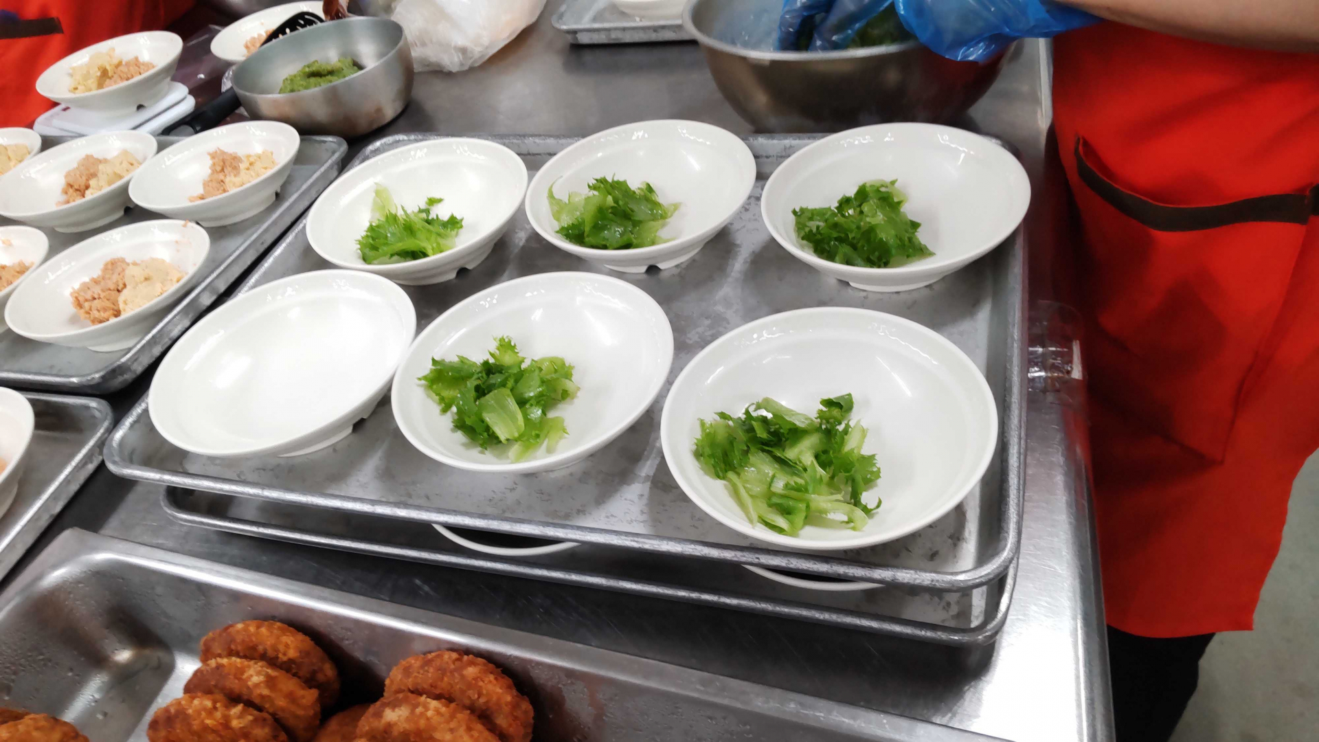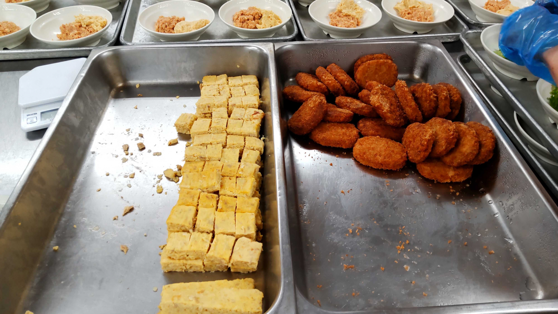 入所者の数が当施設の3倍程あり、昼はデイサービスの方の食事もあるのでかなりの食数を作っていました。