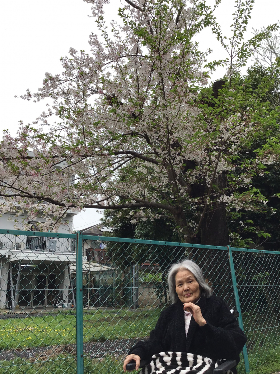 といことで、入居者のNさんをお外に連れ出し、桜を見ながら散歩しました。