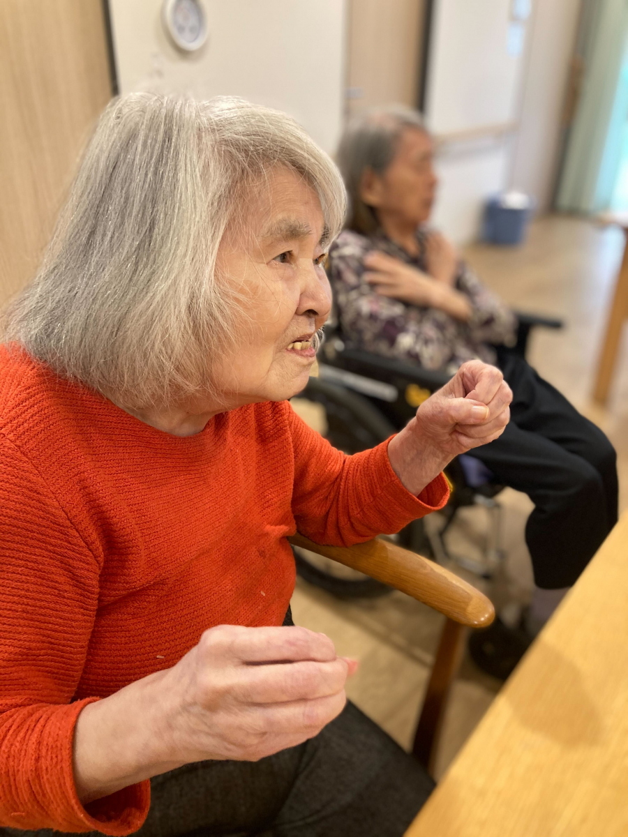 席替えをして体操好きな方がお隣になったことで、自然と参加されるようになりました。