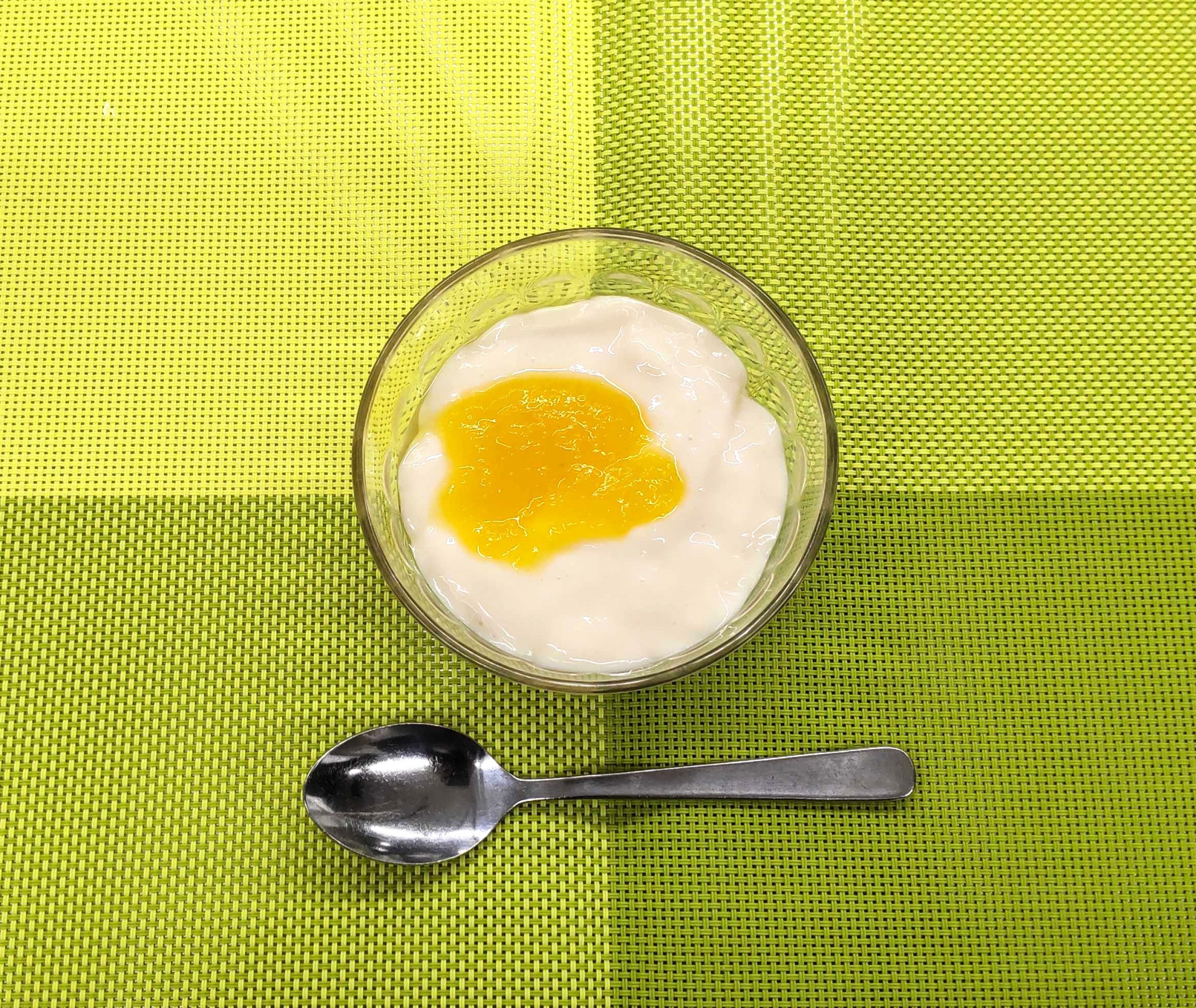 オレンジ味のフルーチェにオレンジソースをトッピングしました♪