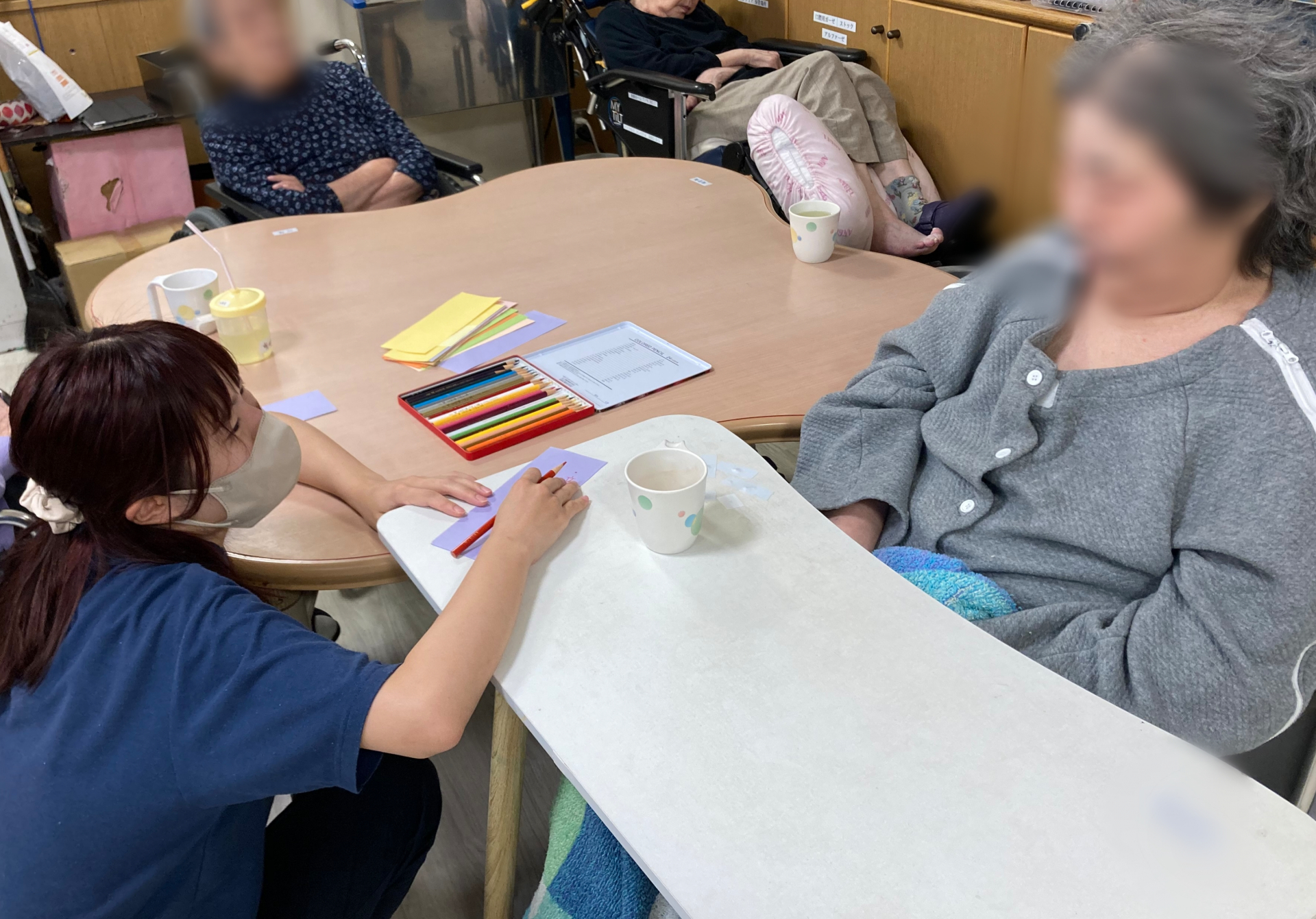 職員も書くのをお手伝い。