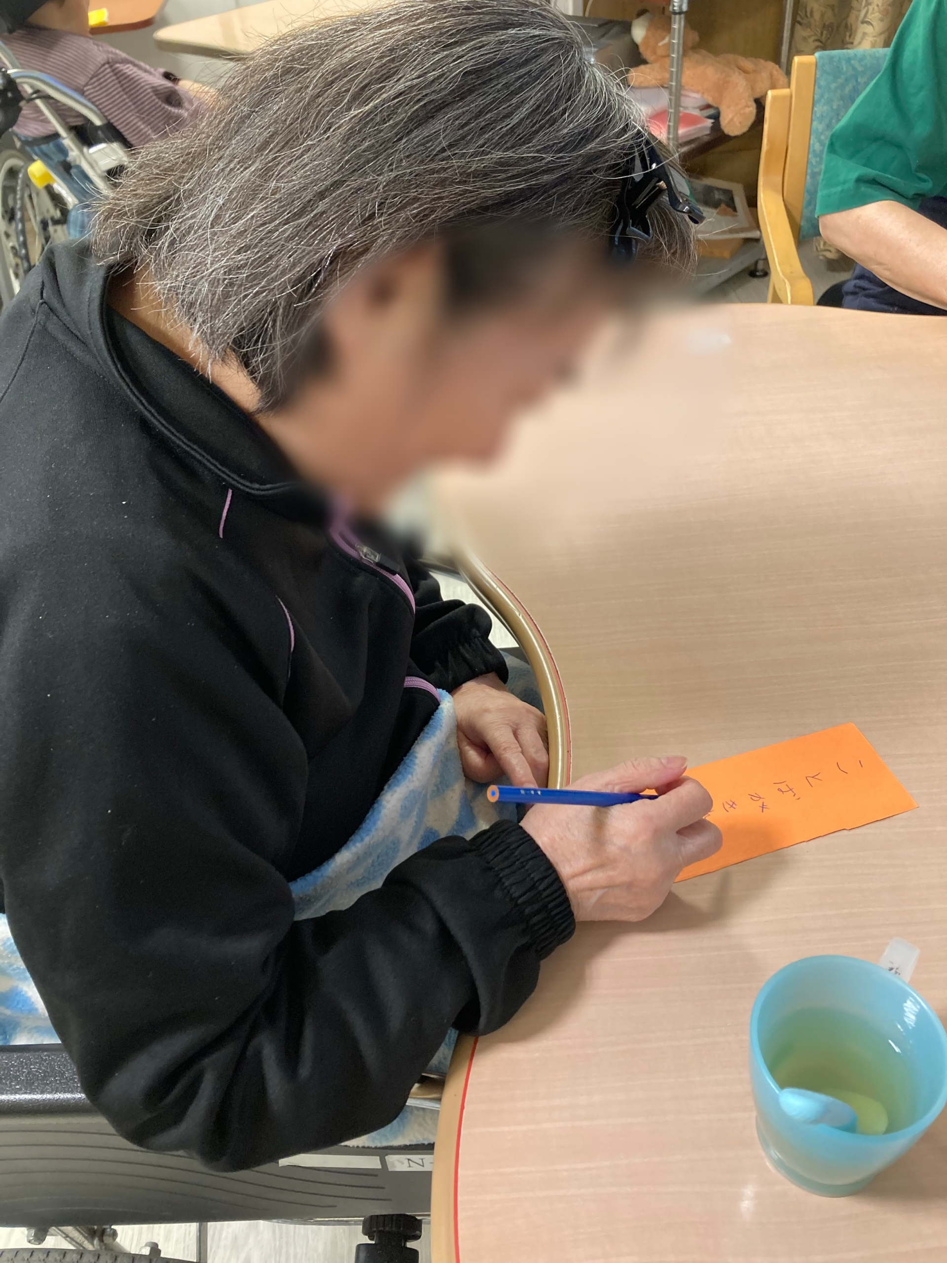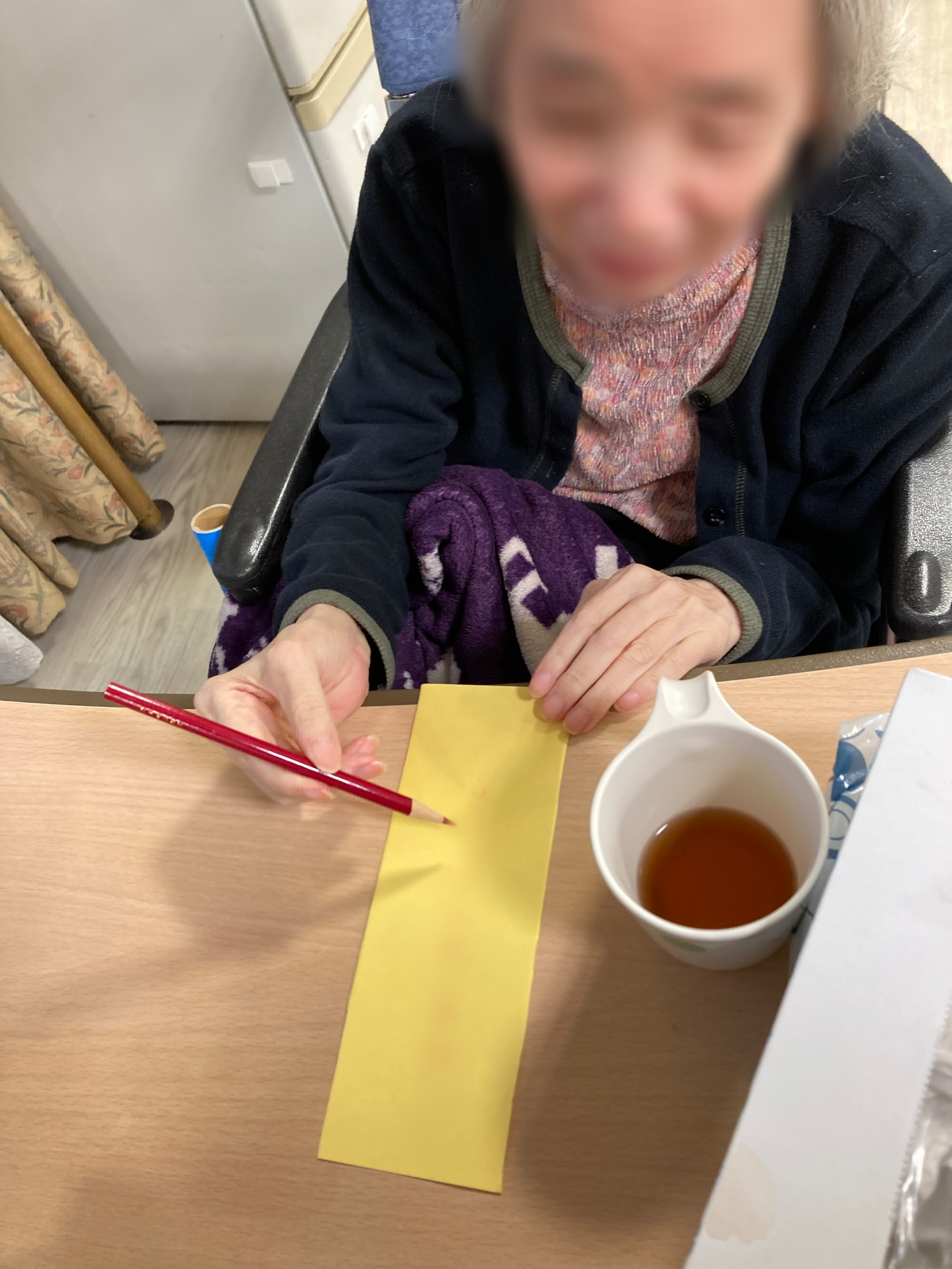 だいぶ遅くなりましたが、七夕の短冊を書いておられる様子を少し…。