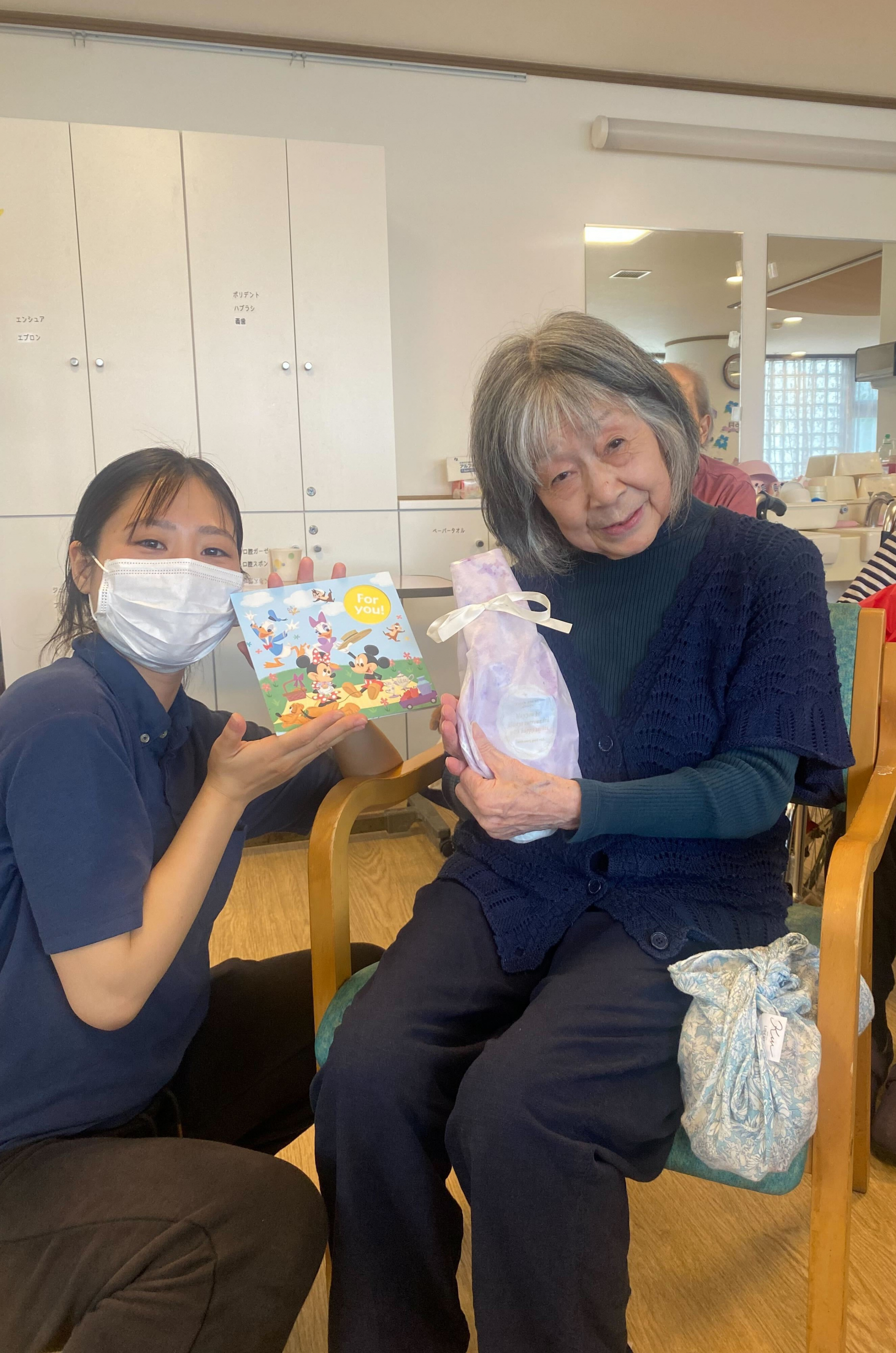 笑顔があふれるひとときの中で、皆で歌を歌ったり、プレゼントに喜んでいただいたりと