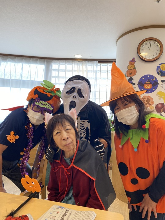 職員も利用者の方々も、少しだけ仮装をしてハロウィン気分を楽しみます🎃