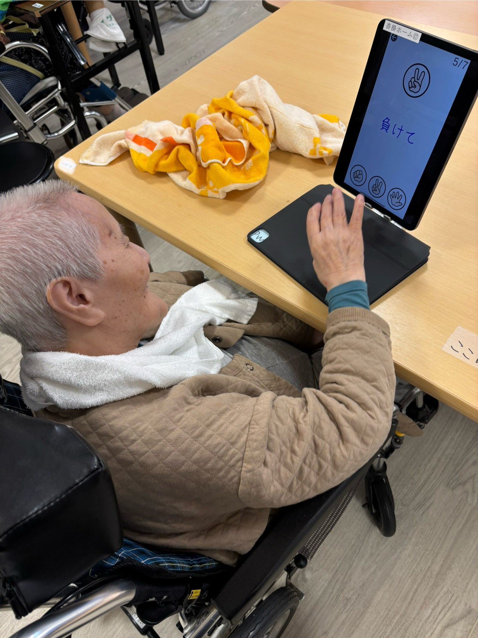 昼下がりの時間になるとおやつなど召し上がり少し時間があるので、本日はiPadを活用し脳トレをしていただきました。