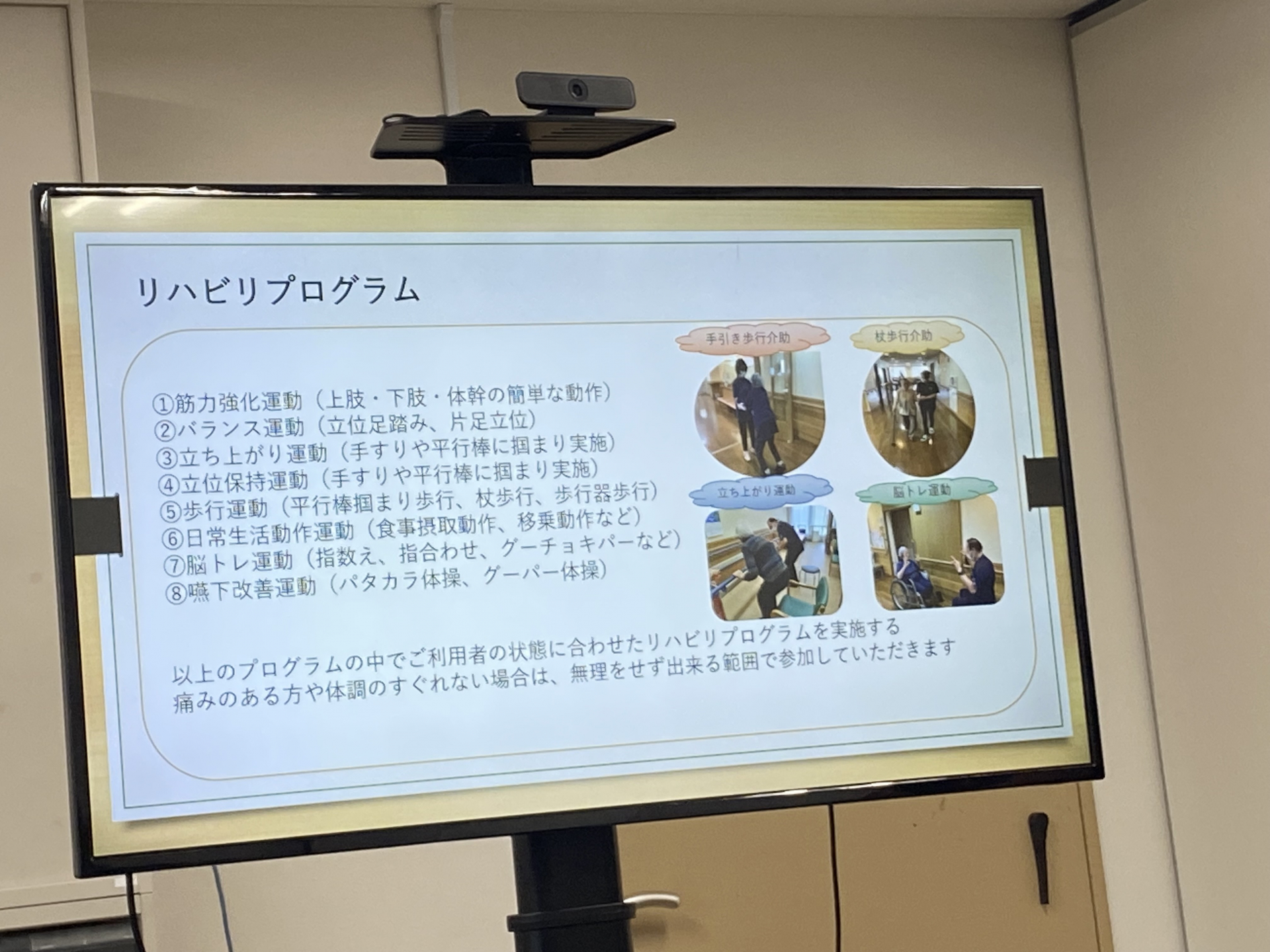 機能訓練指導員より今後はショートステイでもリハビリを行っていくことや