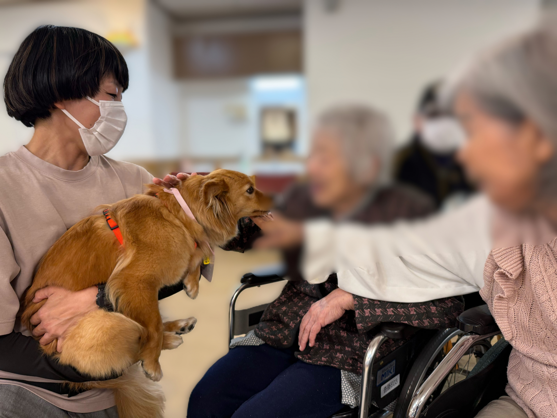 普段あまり表情の変わらない利用者様も犬に触れた瞬間に笑顔を見せてくれたり…