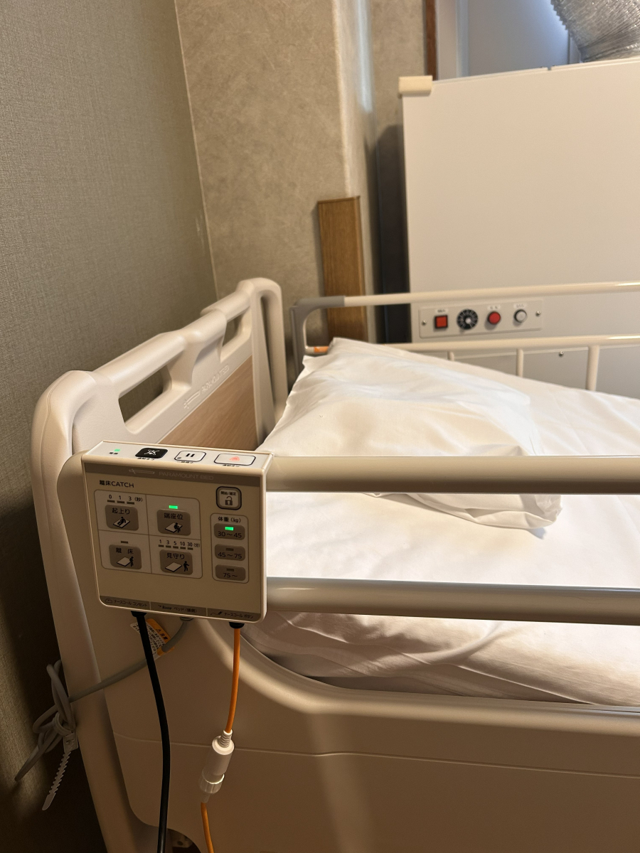 今回導入したセンサー付きのベッドは、利用者様の離床だけでなく動きも感知し、職員へお知らせする事でより安全に見守りができる設備となっています。