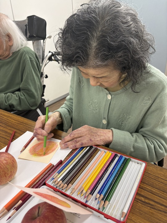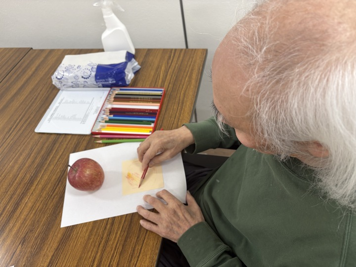 五感で楽しむ臨床美術「りんごを描く」