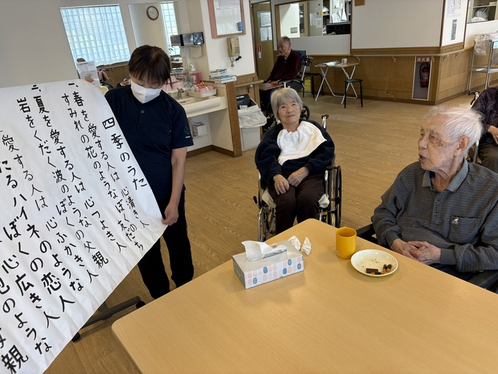 懐かしい歌や季節の歌をみなさんで歌い始めると…自然と笑顔が広がっていきます。