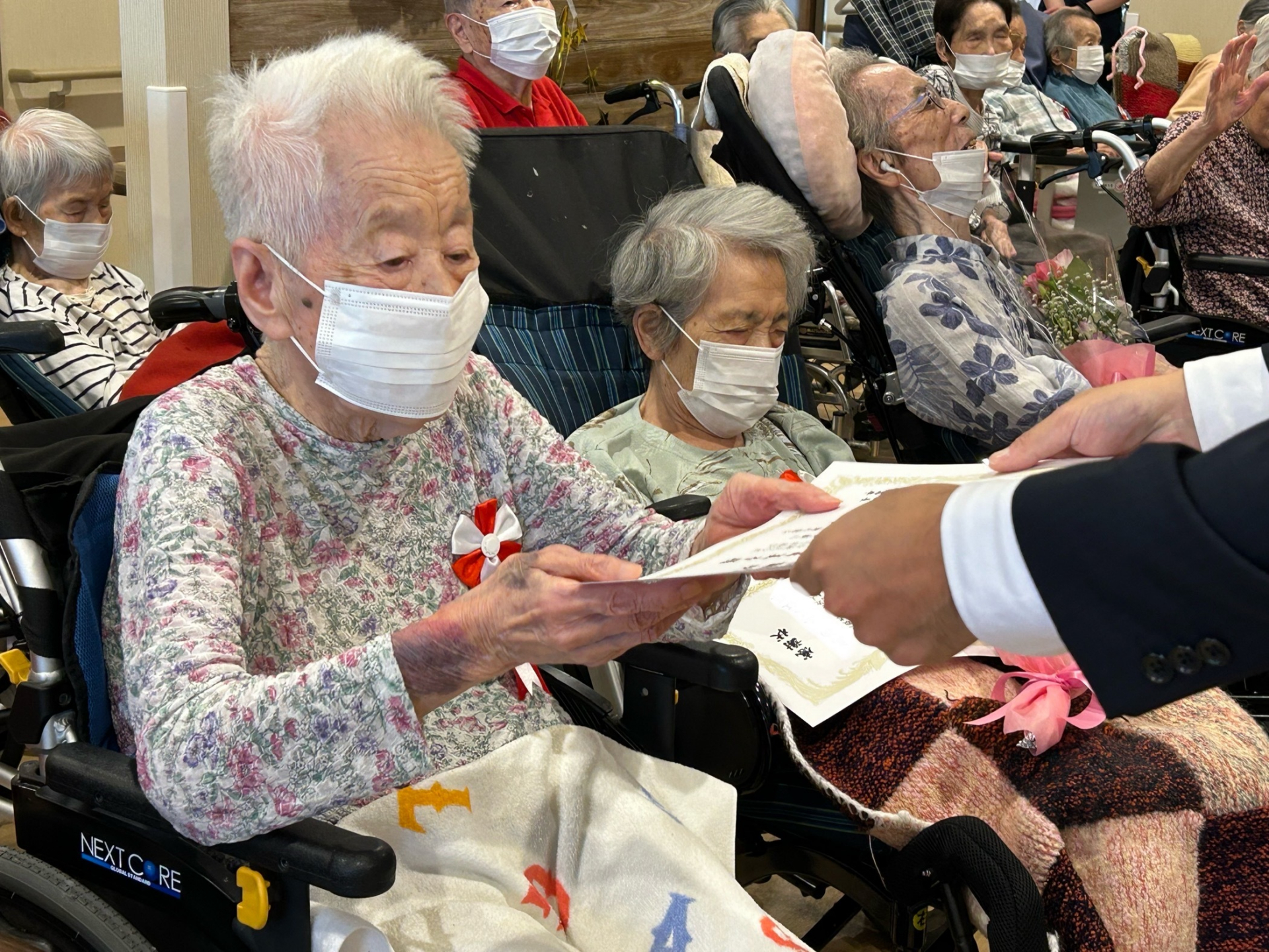 賀寿の方は総勢19名。ユニット職員手作りの動画を見たりして過ごしていただきました。