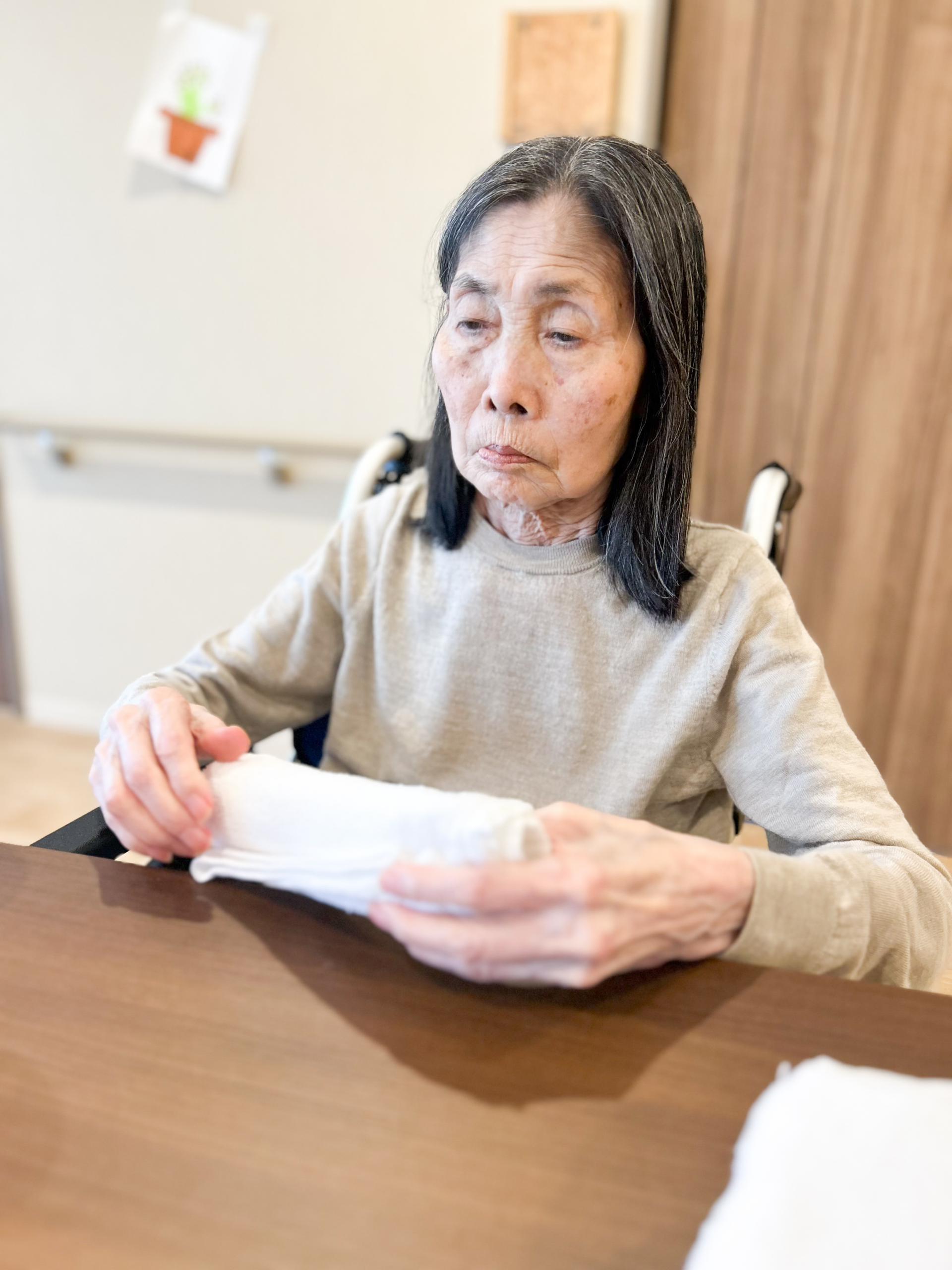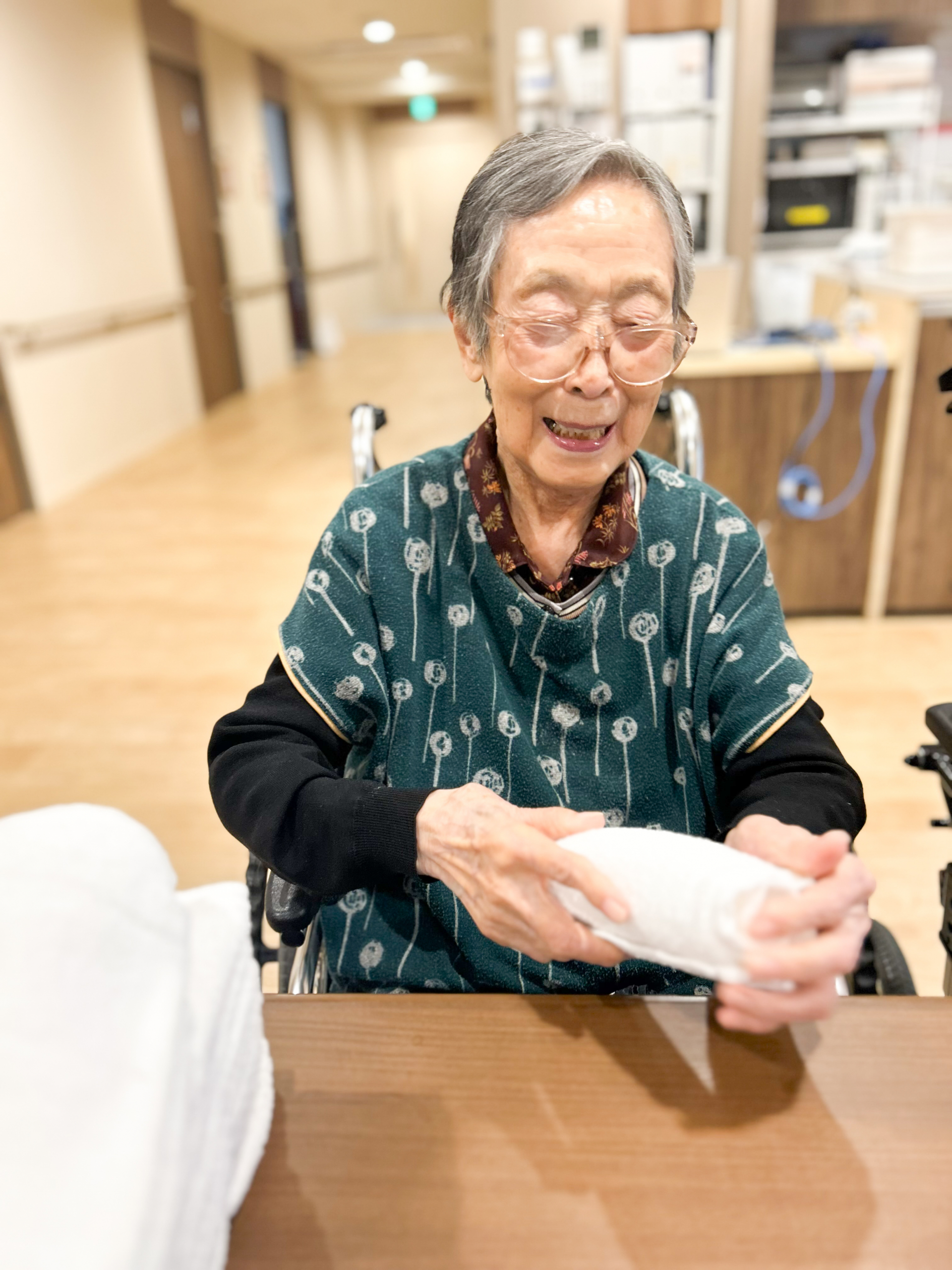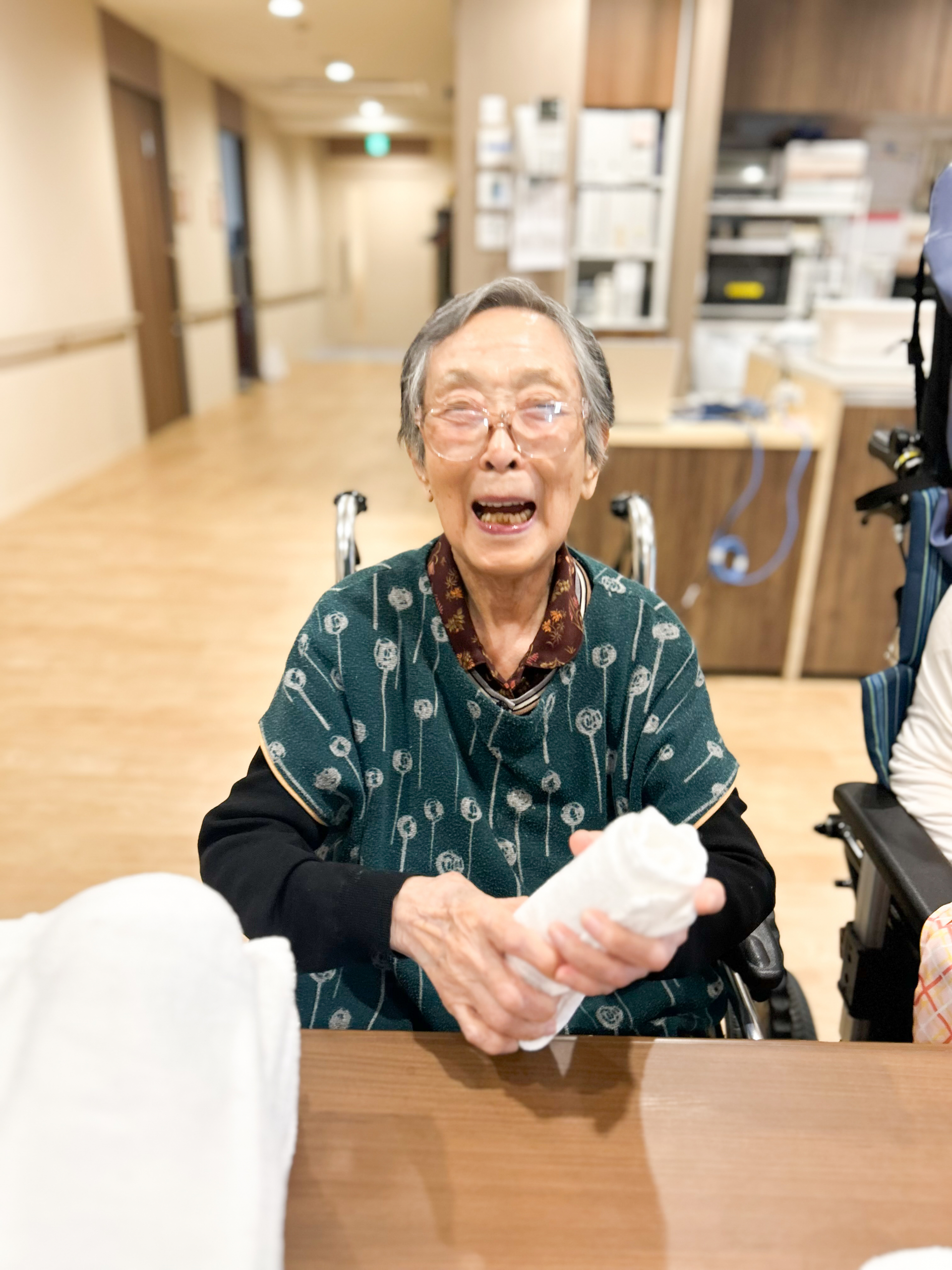 皆様とっても優しくて、職員がタオルを持っていると「それどうするの?こっちにちょうだい!くるくるっと丸めるんだろ?」と話しかけてくださいます(*^^*)♡