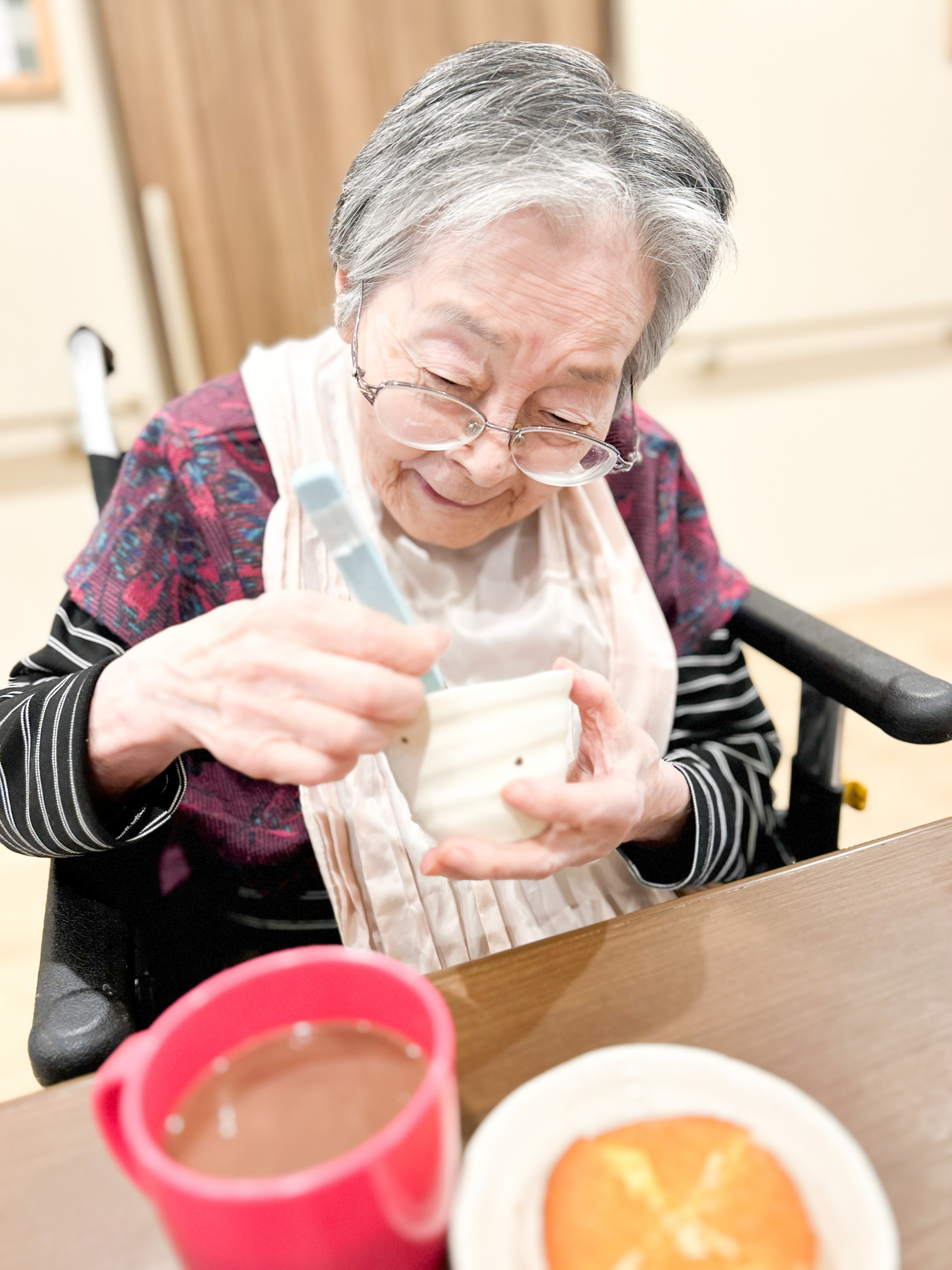 今日のおやつは何かな??と楽しみにされている女性のご入居者様がいらっしゃり