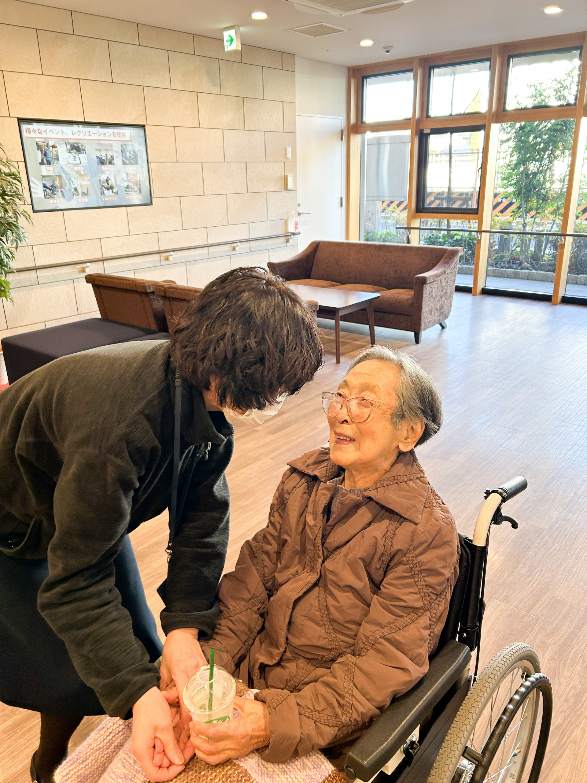 お外へ出て「日向は暖かいわね~」と笑顔でお話しながら歩き…