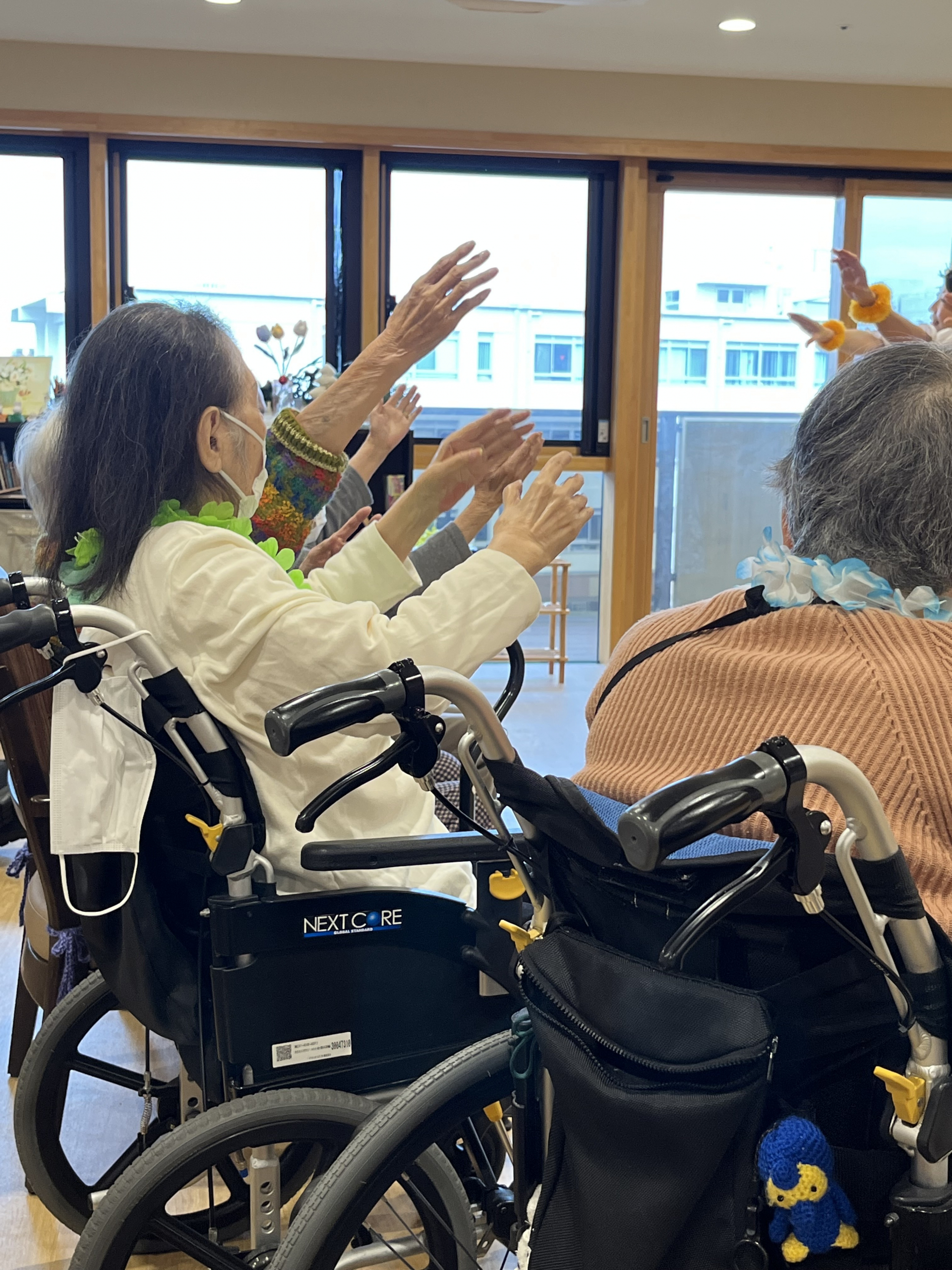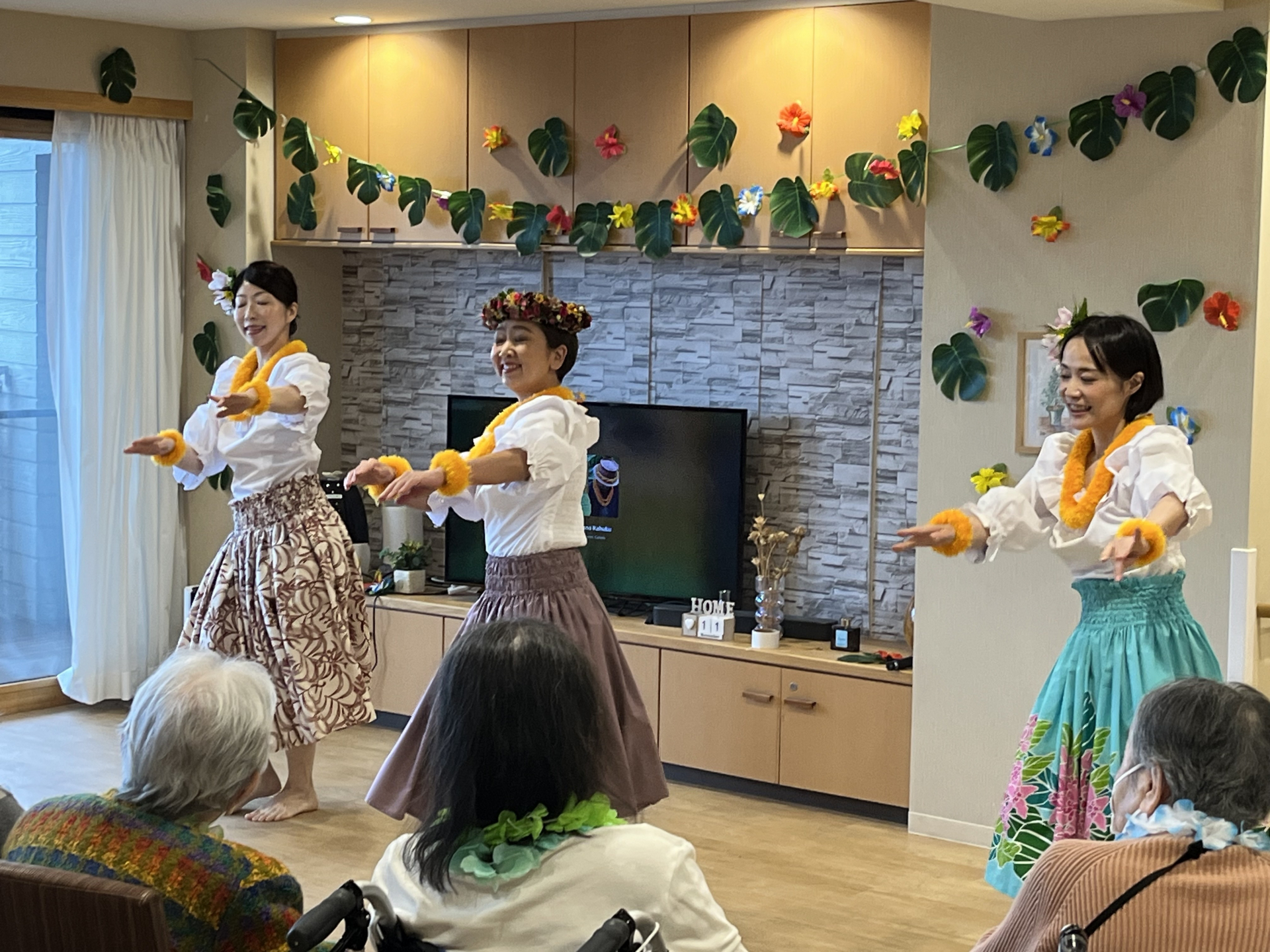 少し前の事になりますが、フラダンスを披露してくださるボランティアさんにご来所いただきました(^^♪