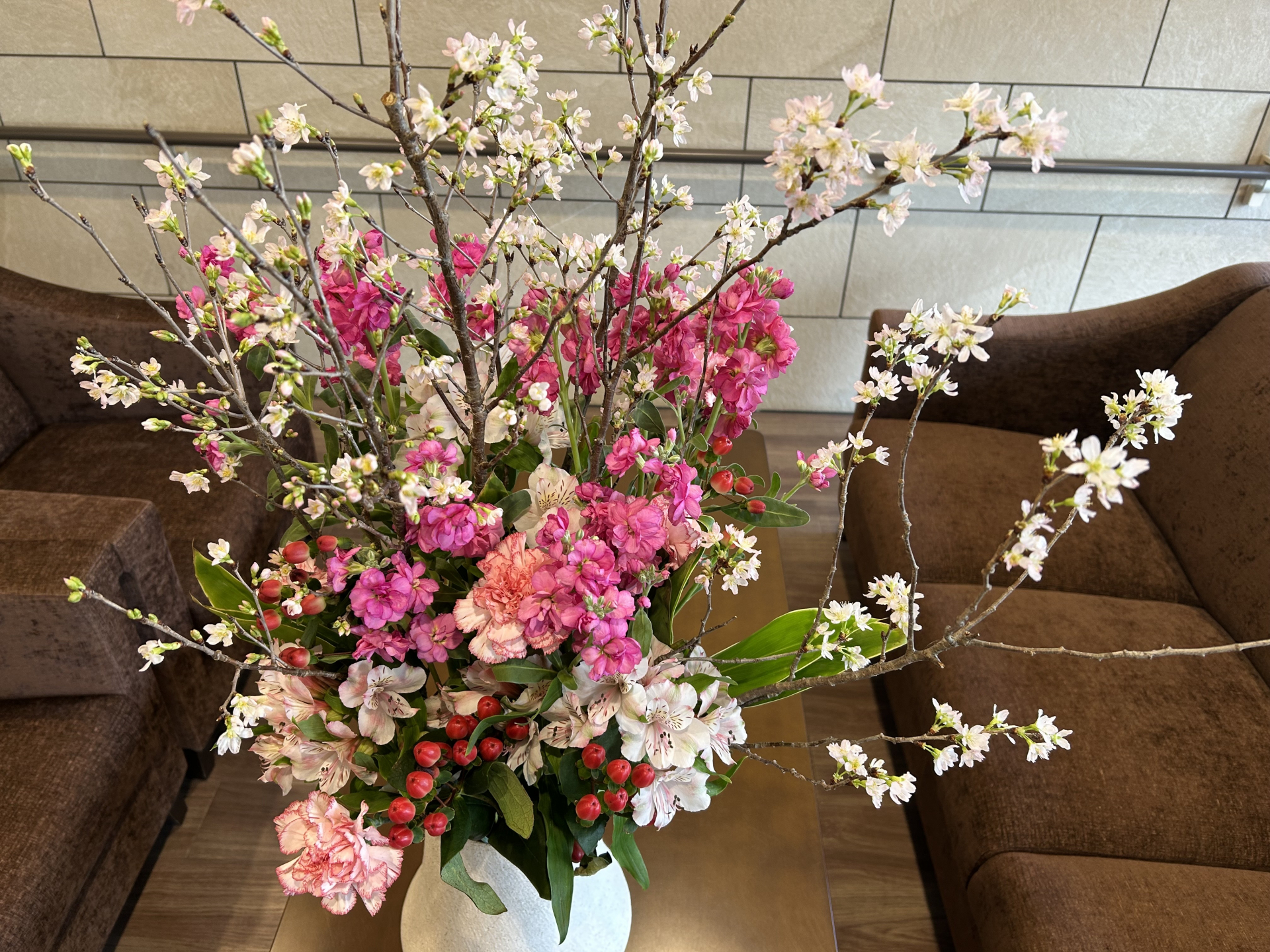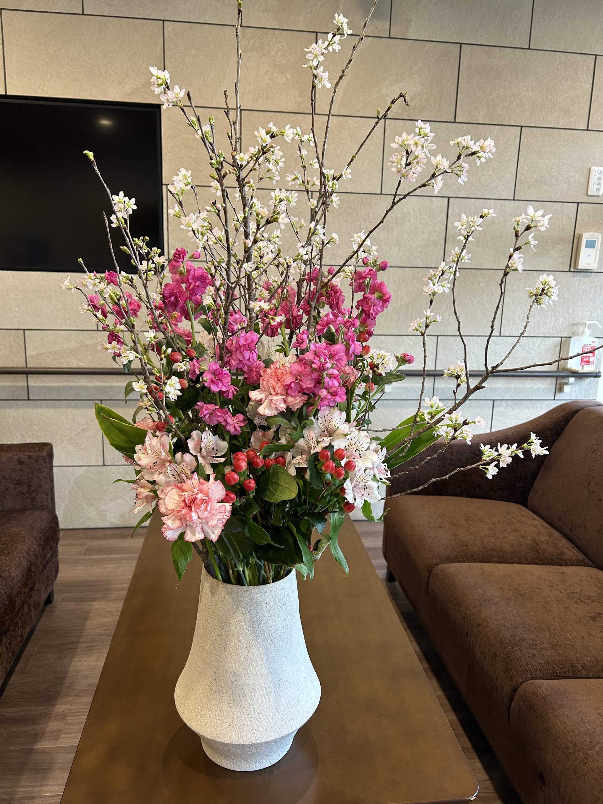 受付には、生花の桜をあしらい、春の訪れを感じていただける空間を演出しています。