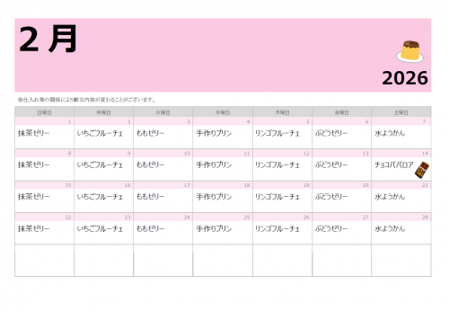 2026年2月の献立表をアップロードしたので、こちらからご確認ください♪