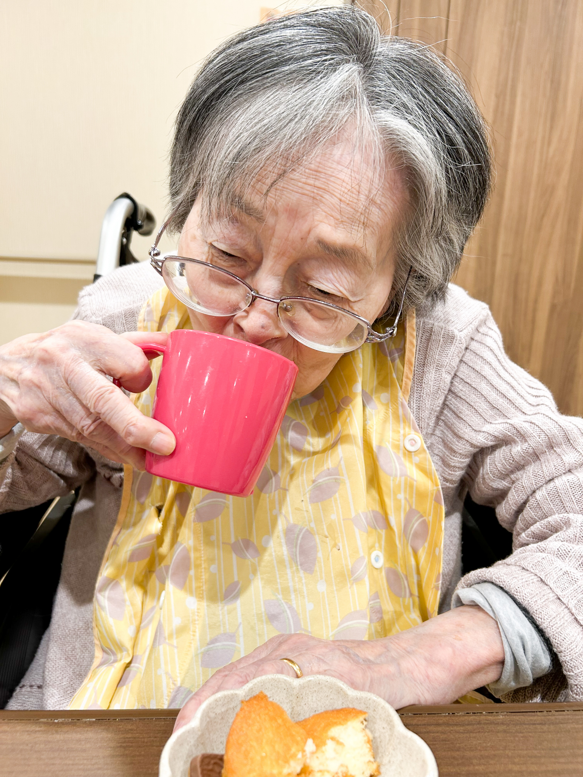 毎月ご家族様からのおやつを楽しみにされている女性のご入居者様が